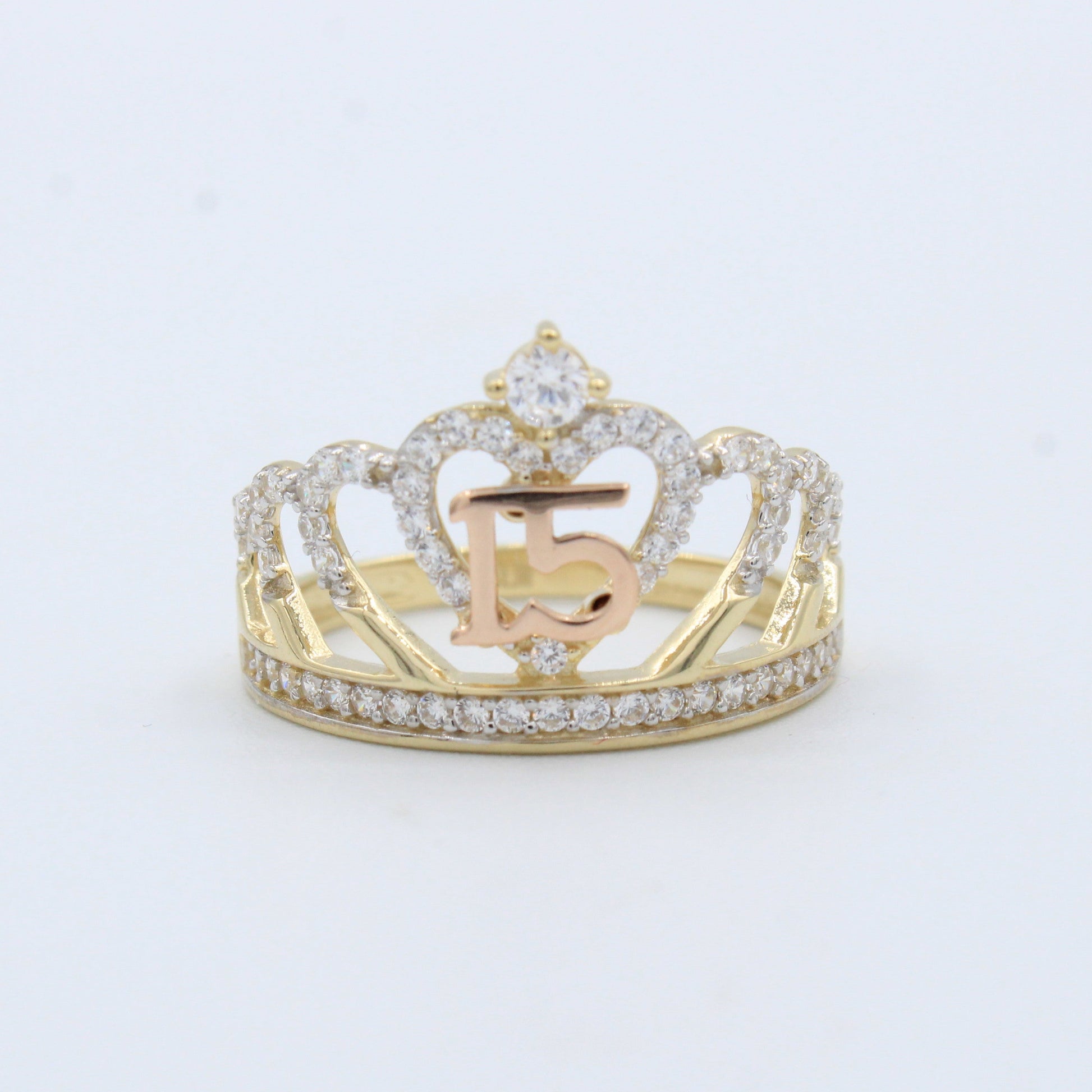 Anillo XV Años de Oro 14k Corona con Número mod. 10207