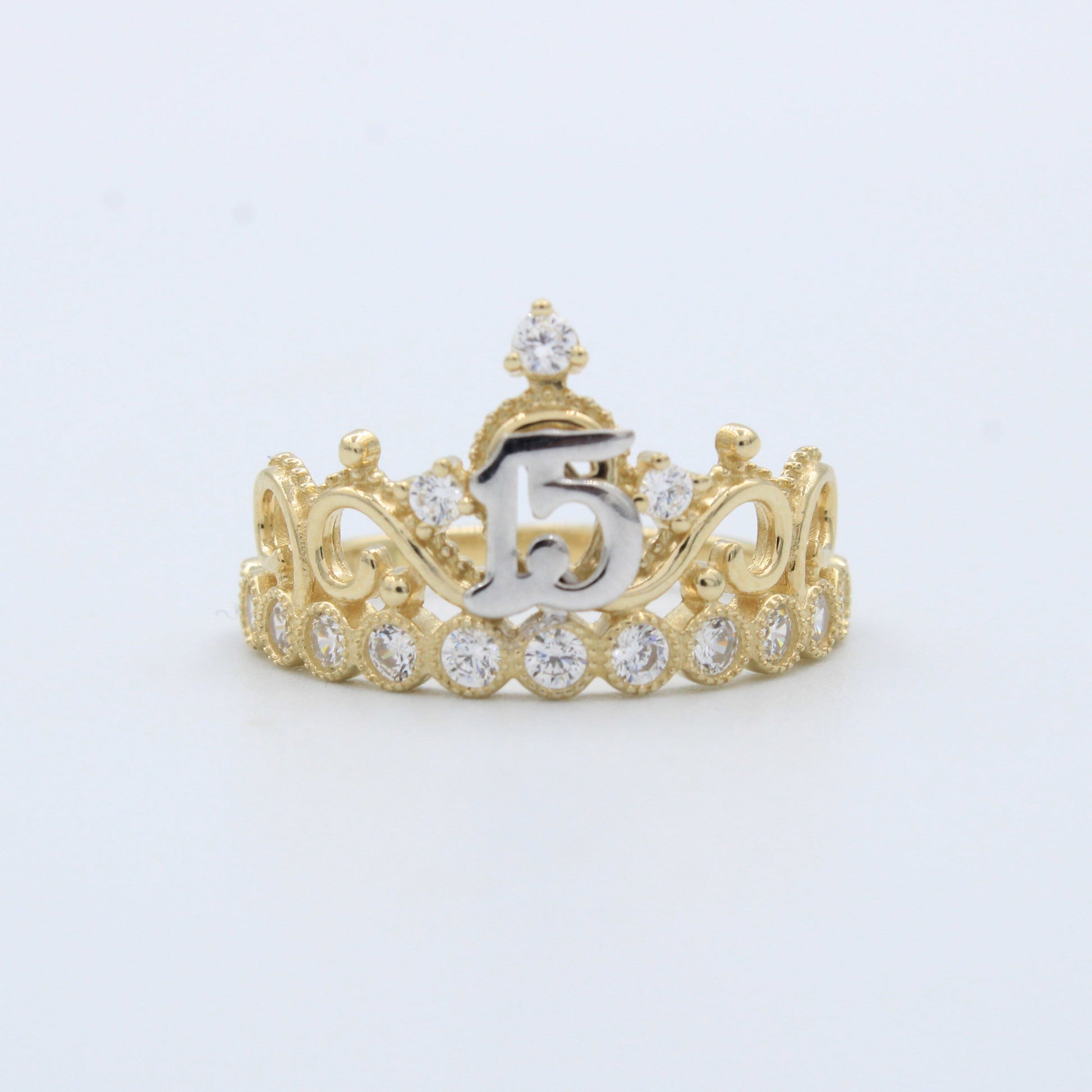 Anillo XV Años de Oro 14k Corona Fina y Brillante mod. 10213