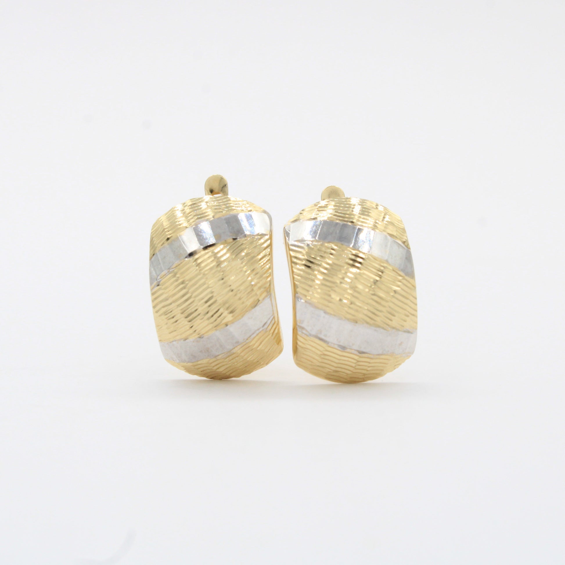 Arete con Broche Patente de Oro 14k Modelo Fino con Líneas Brillantes mod. 10352