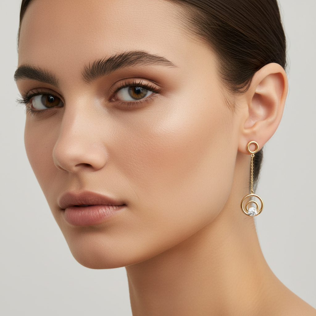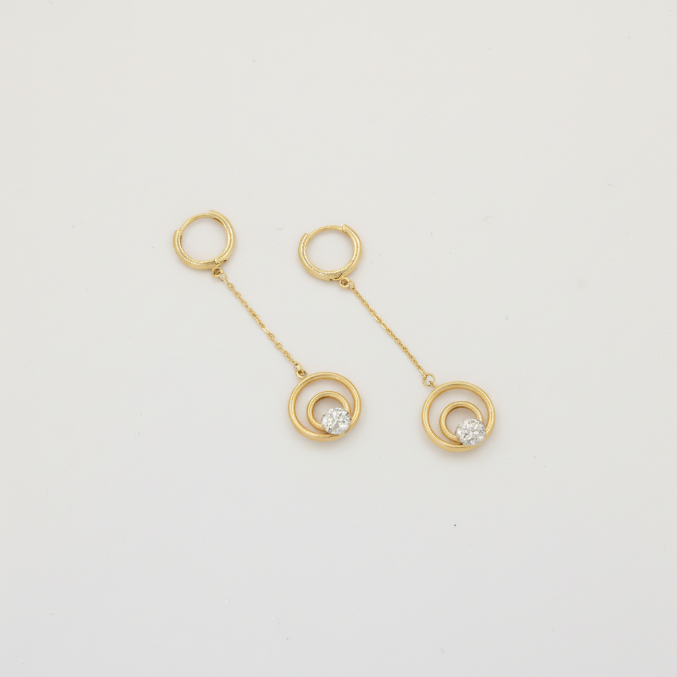 Arete Largo de Oro 14k Diseño Elegante con Círculos Unidos mod. 10122