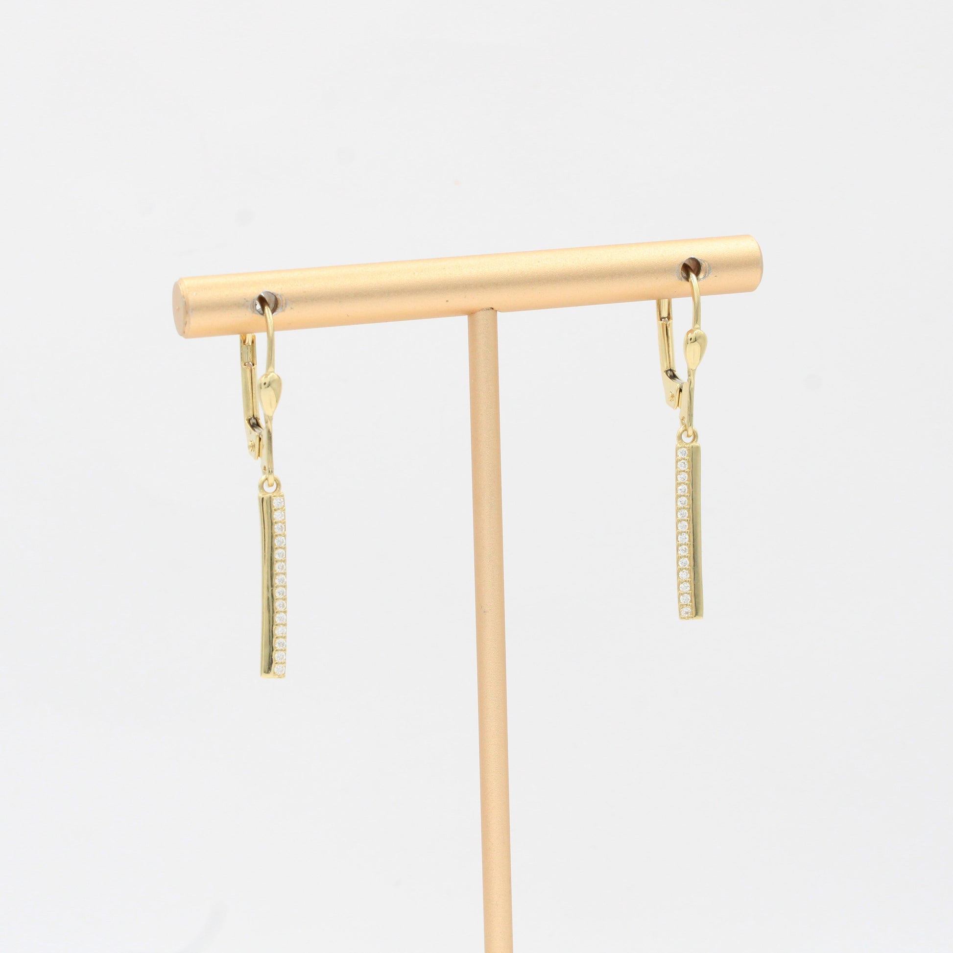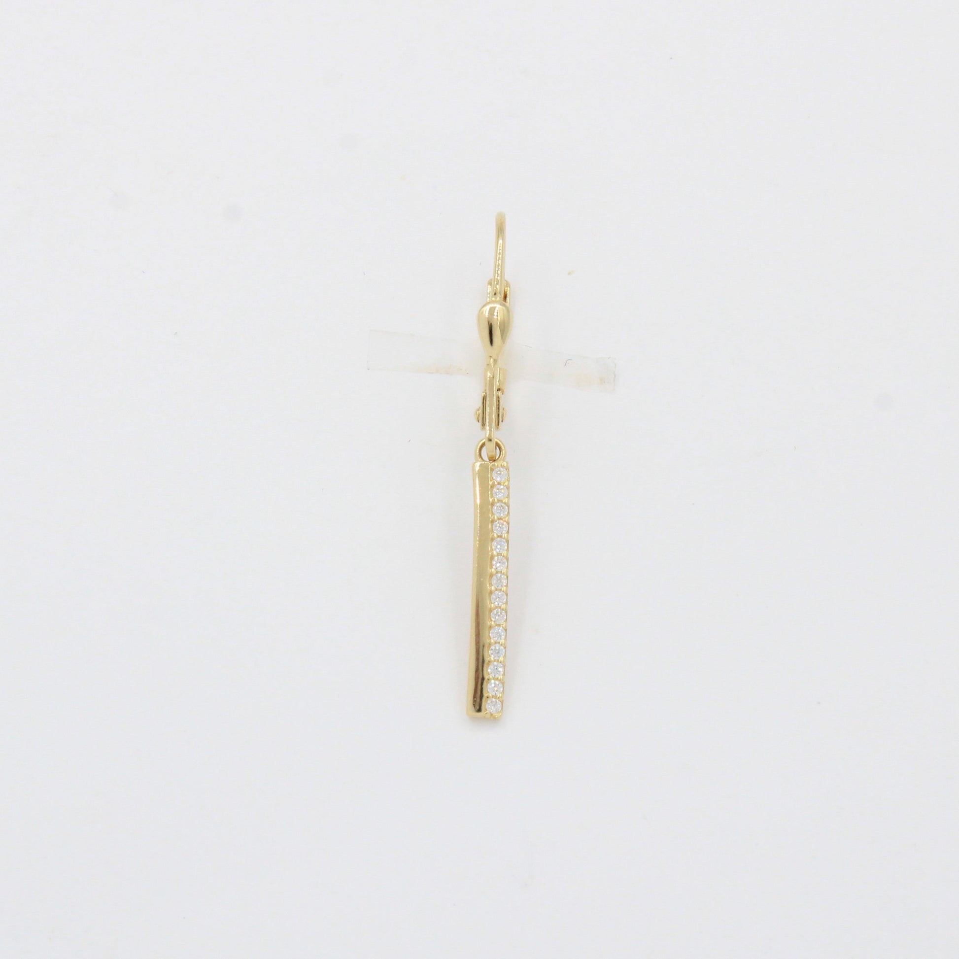 Arete Largo de Oro 14k Diseño Tira Fina Incrustada con Zirconias mod. 10347