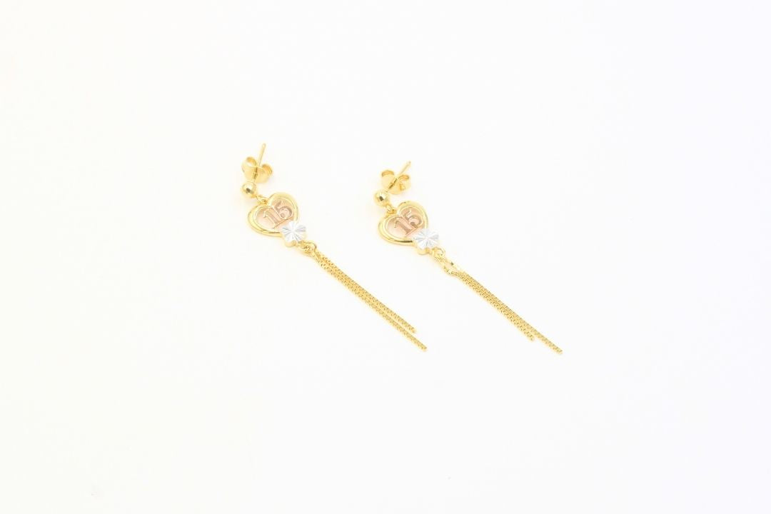 Arete Largo de XV Años con Corazón y Flor mod. 5515