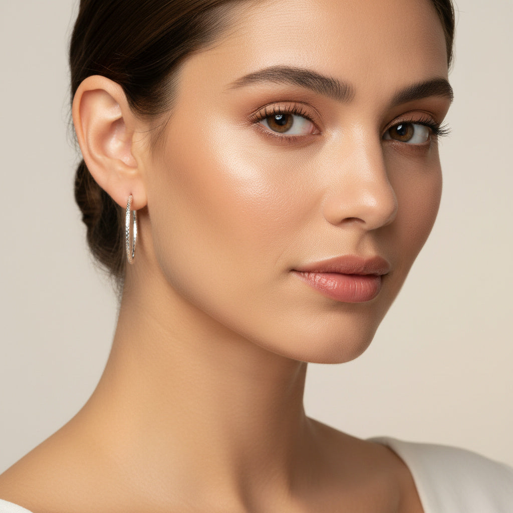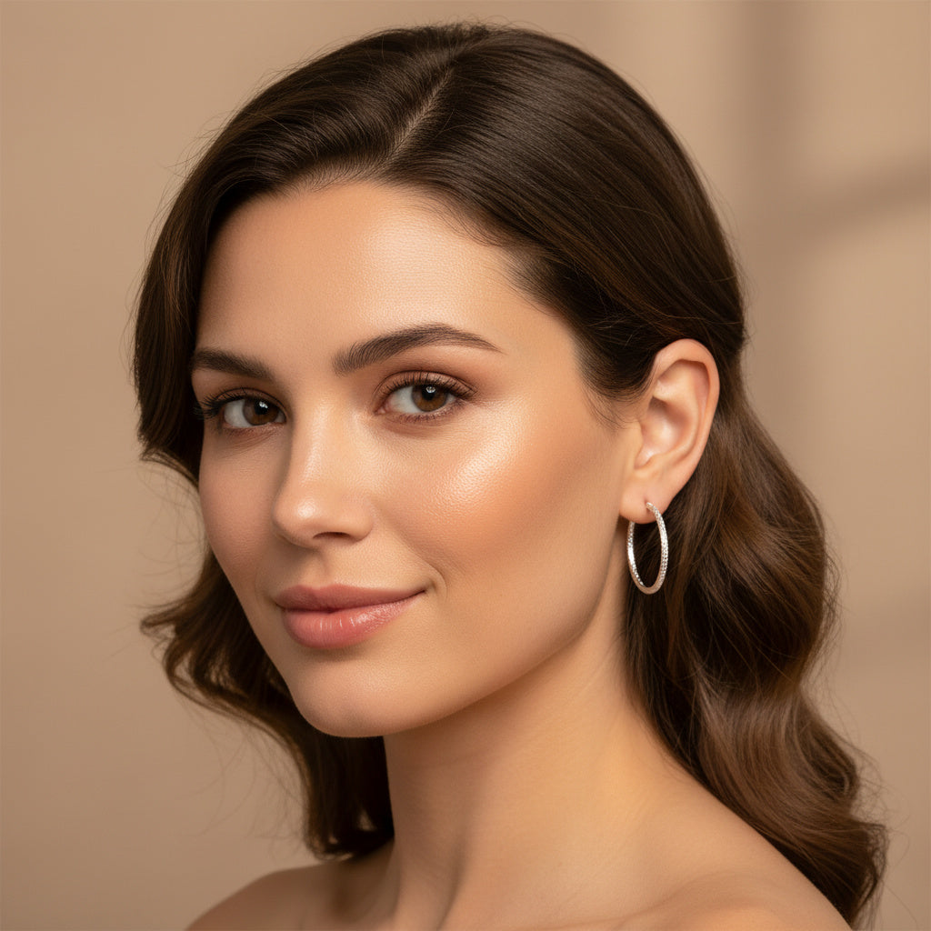 Arracada de Oro 14k Blanco en Diseño Tubular Hueco con Diamantado Fino mod. 10042