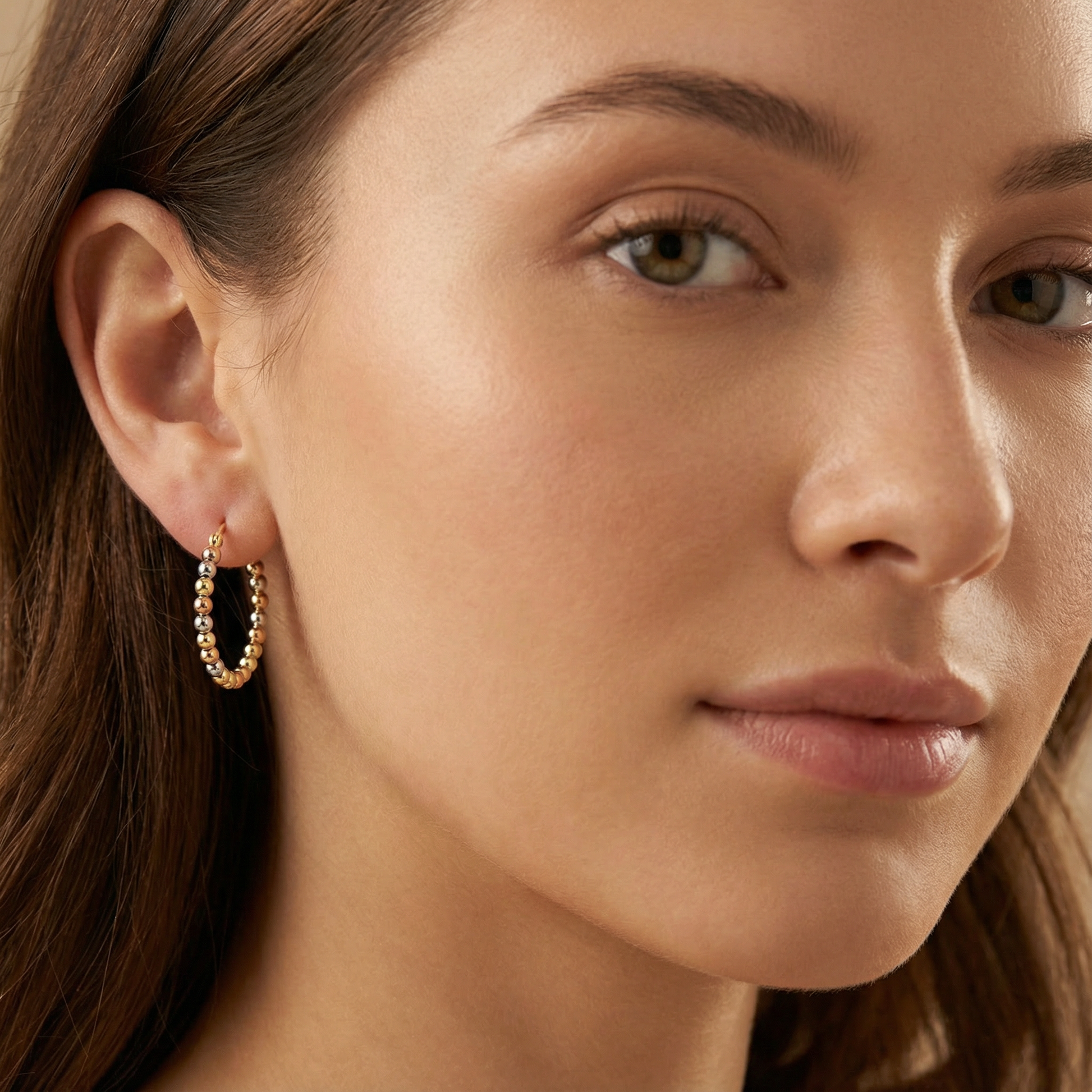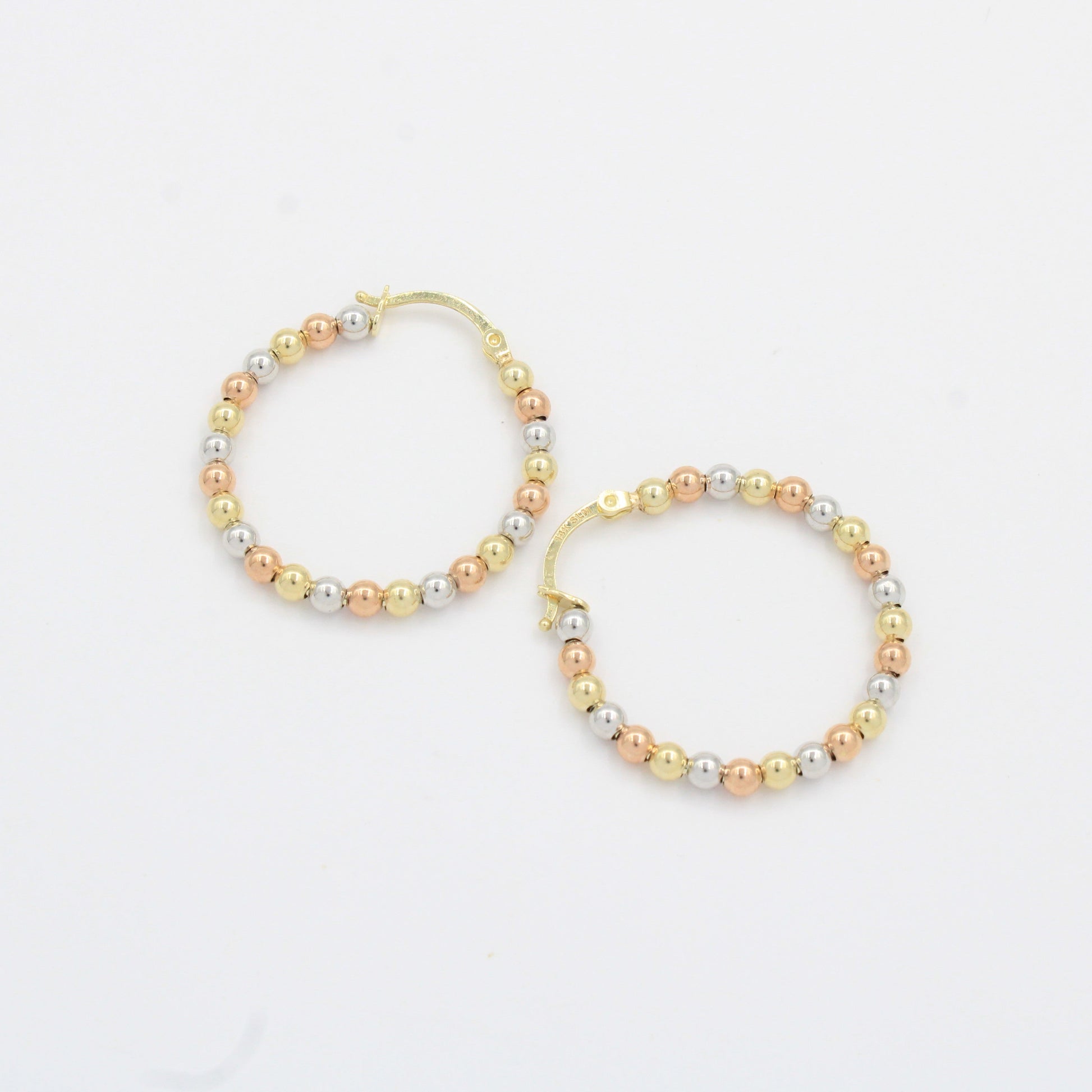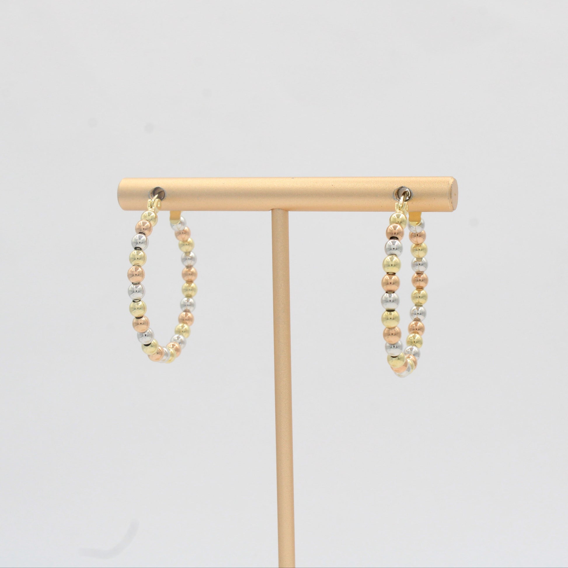 Arracada de Oro 14k Diseño Elegante con Esferas Lisas y Brillantes mod. 10319