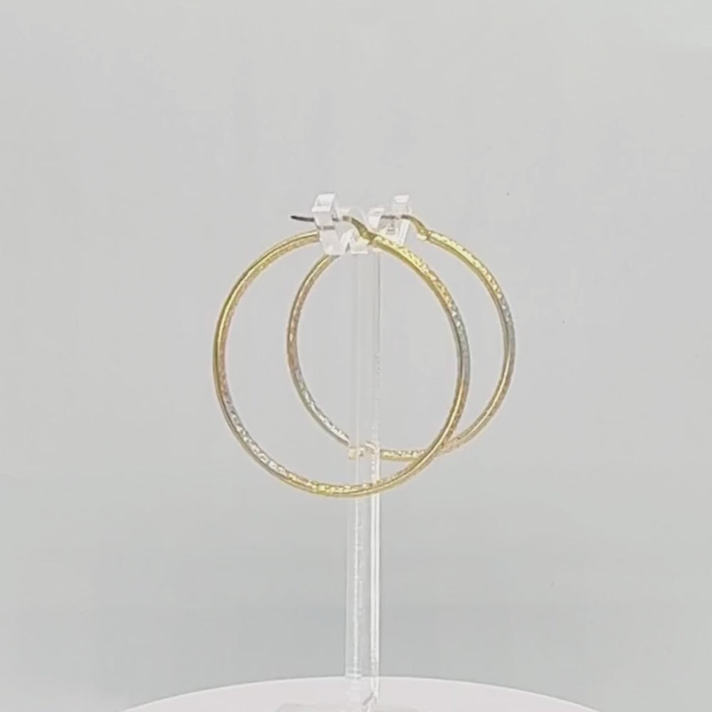 Arracada de Oro 14k Diseño Hueco y Redondo con Diamantado Interior y Exterior mod. 9784