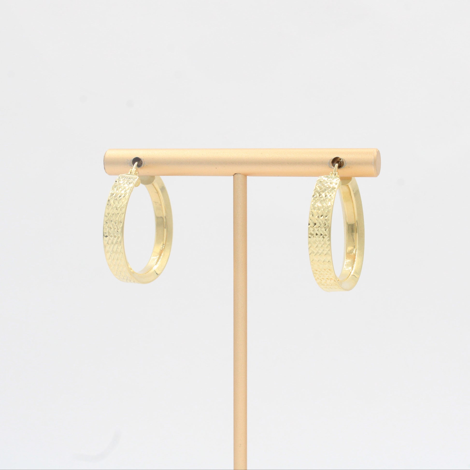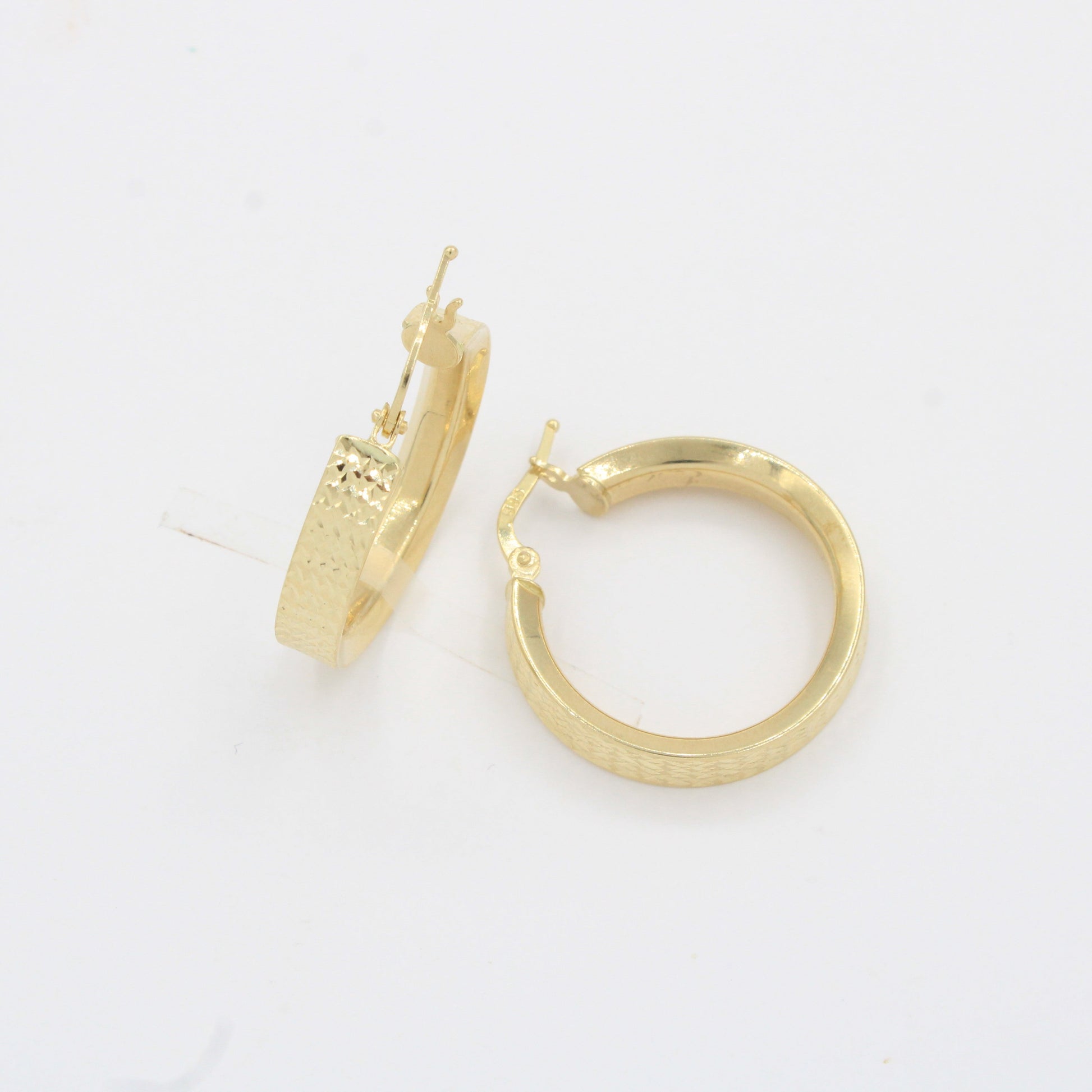 Arracada de Oro 14k Diseño Redondo Estilo Inflado Hueco con Diamantado Exterior mod. 10309