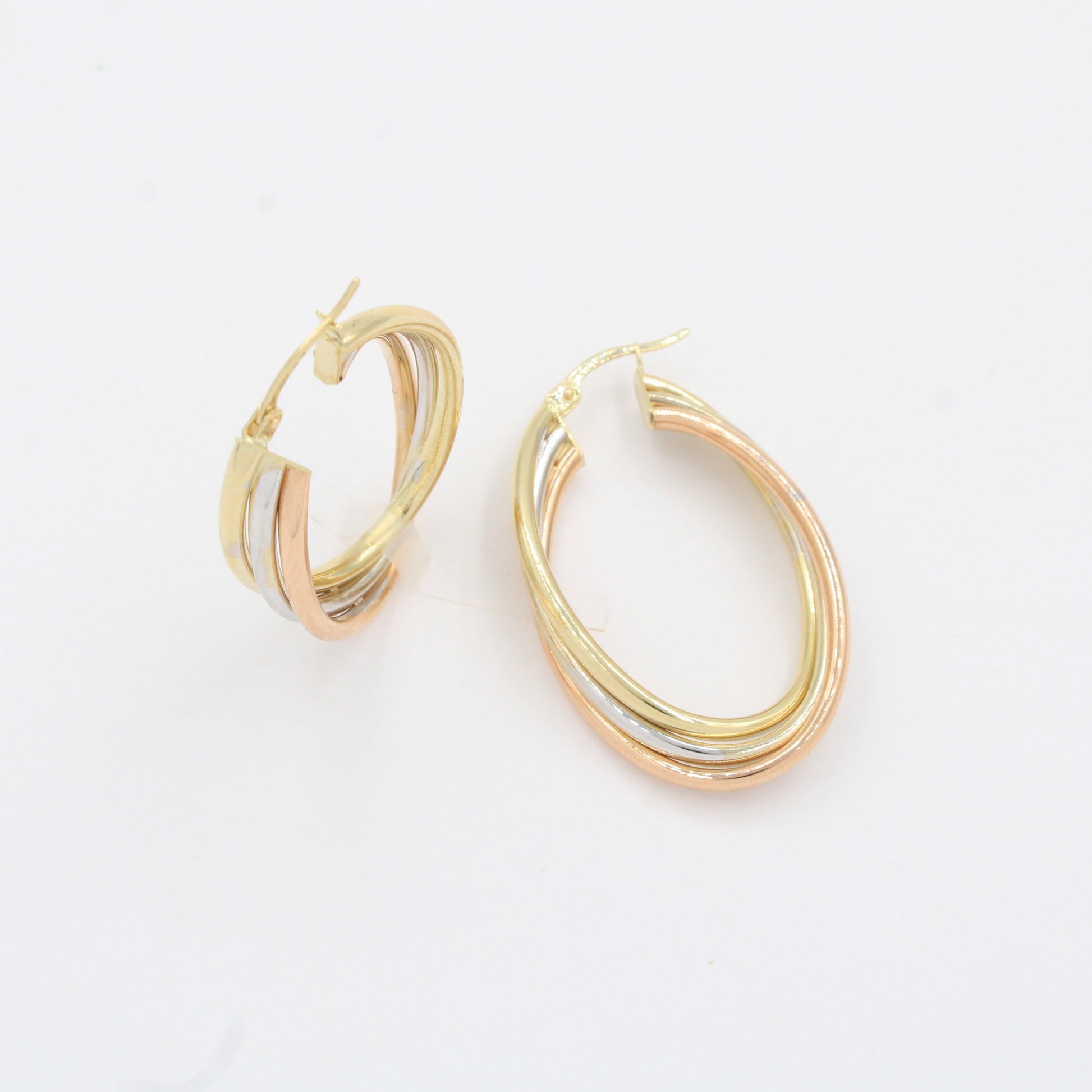 Arracada de Oro 14k Diseño Torzal de Estilo Tubular Hueco en Forma Oval Brillante mod. 10307