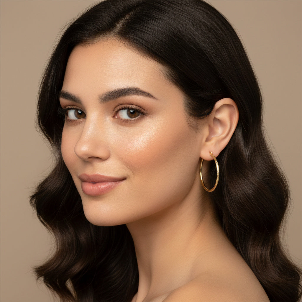 Arracada de Oro 14k Diseño Tubular Hueco con Tonos Mate Contrastados con Diamantado Fino mod. 10033