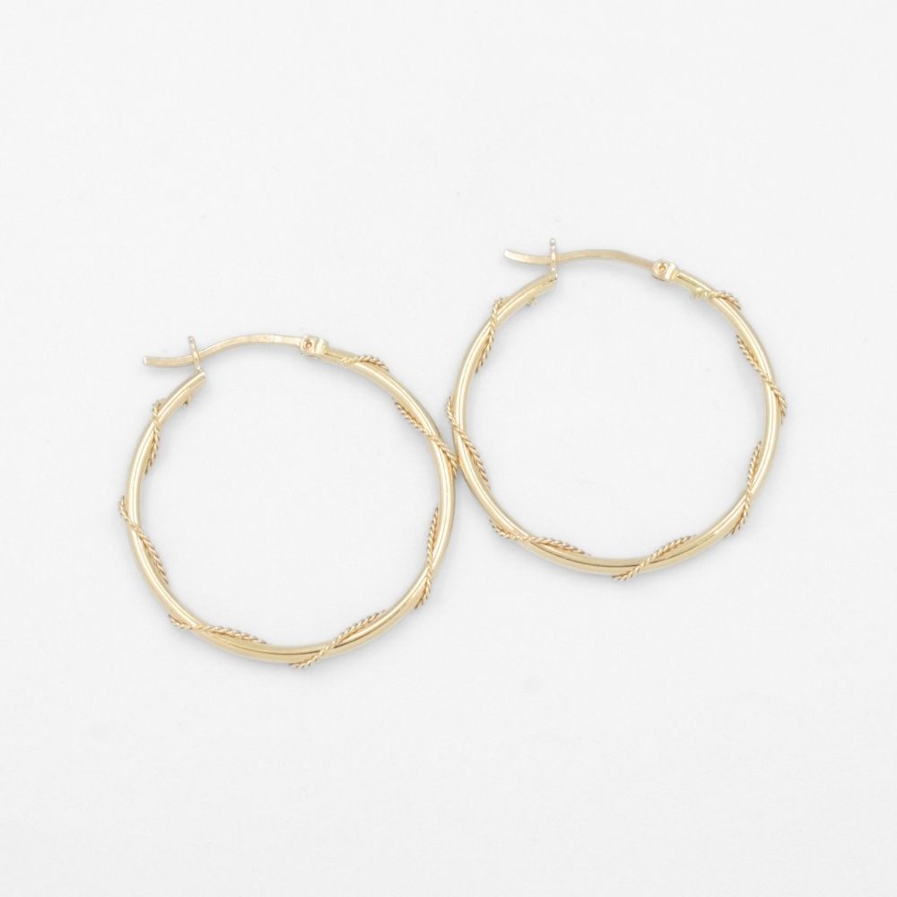 Arracada de Oro 14k Hueca de Diseño Tubular Hueco Detallada con Cuerda Fina mod. 8312