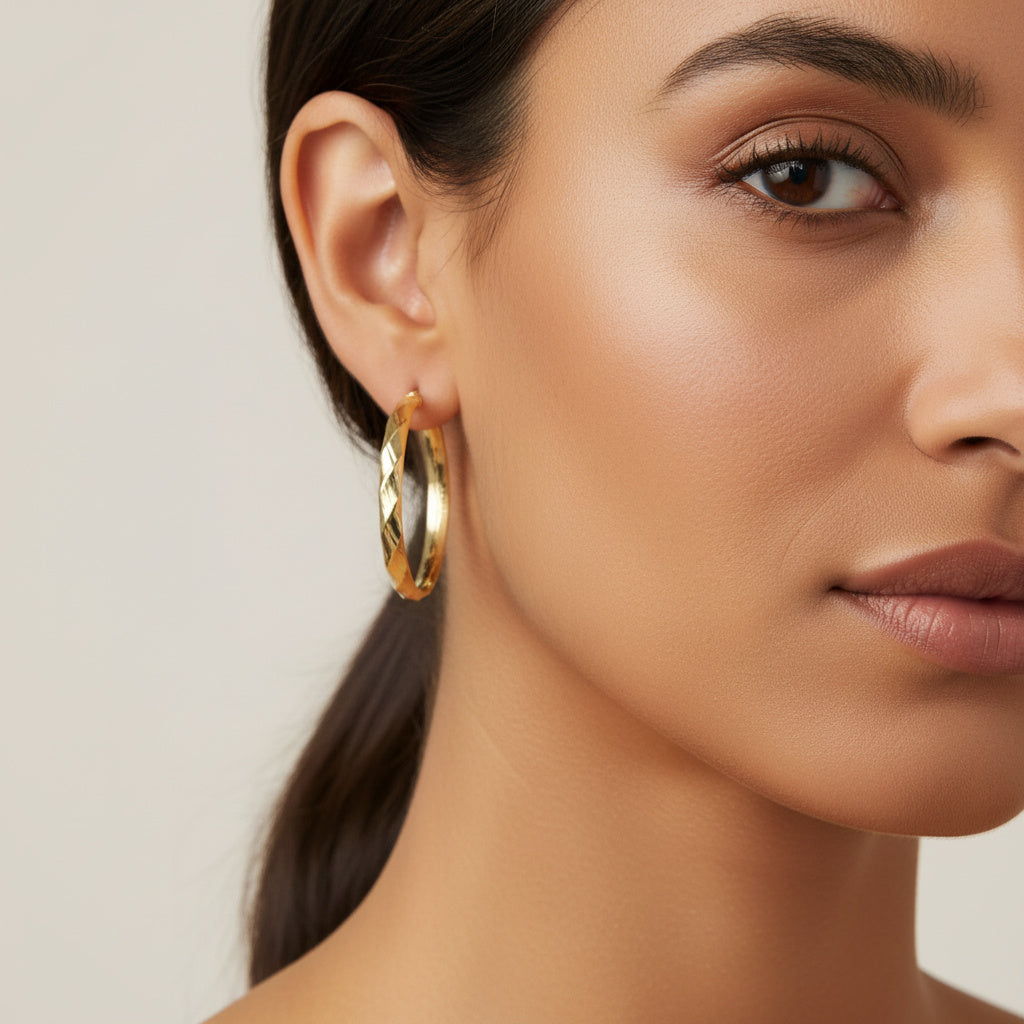 Arracada de Oro 14k Hueco con Diseño Facetado Fino mod. 10028