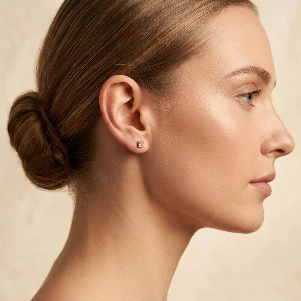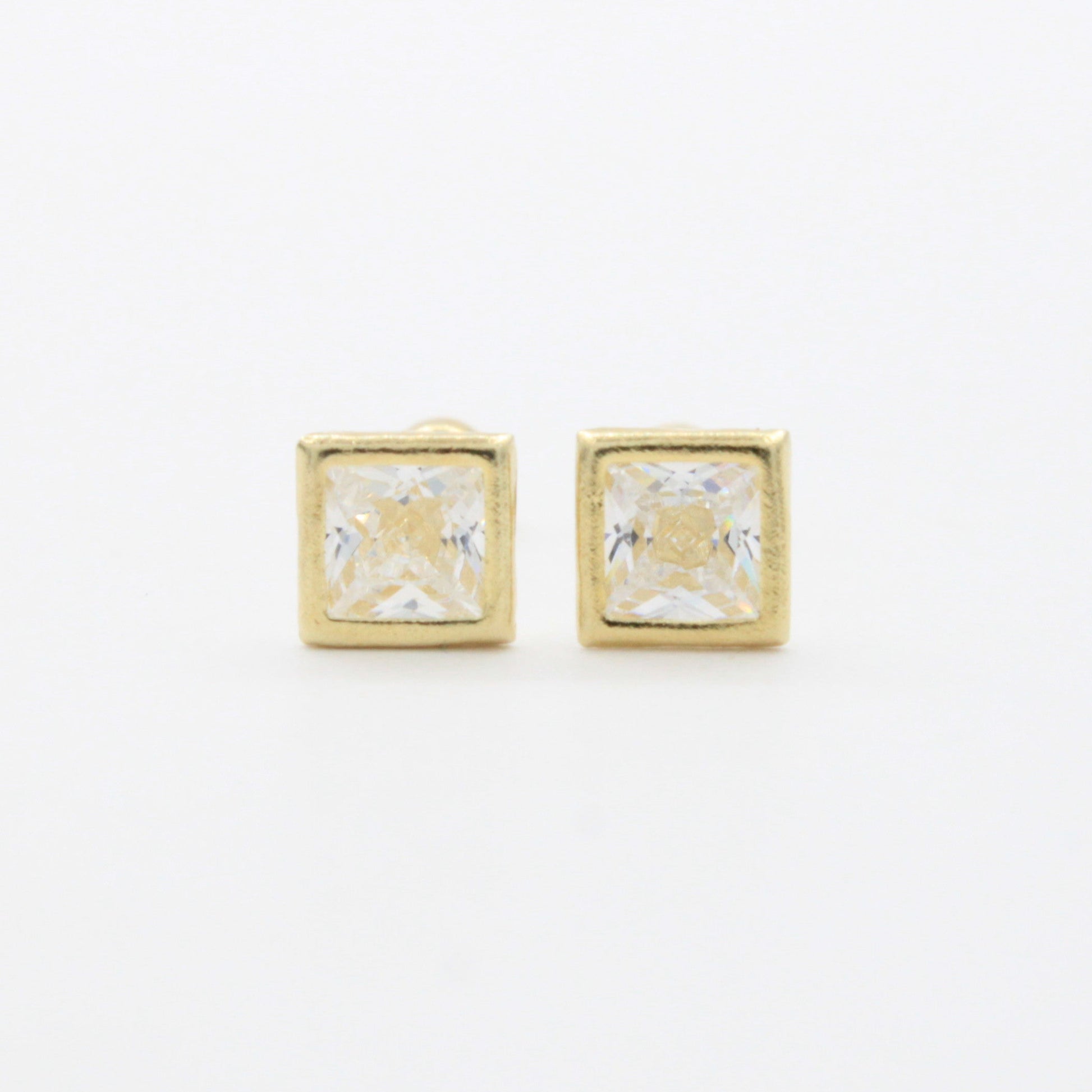 Broquel de Oro 14k Diseño con Zirconia en Bisel Cuadarado mod. 10736