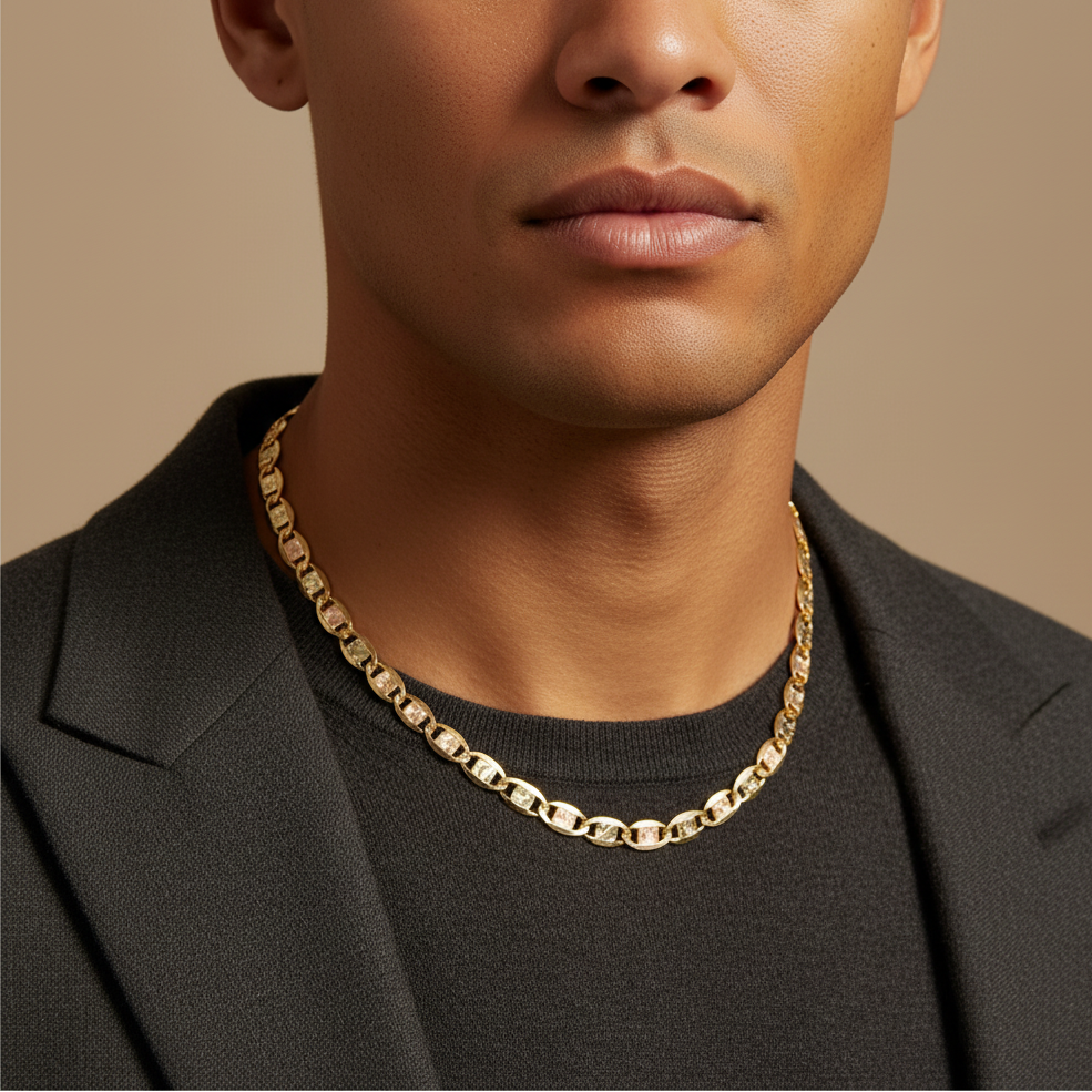 Cadena de Oro 14k con Diseño de Espejo Diamantado mod. 10137