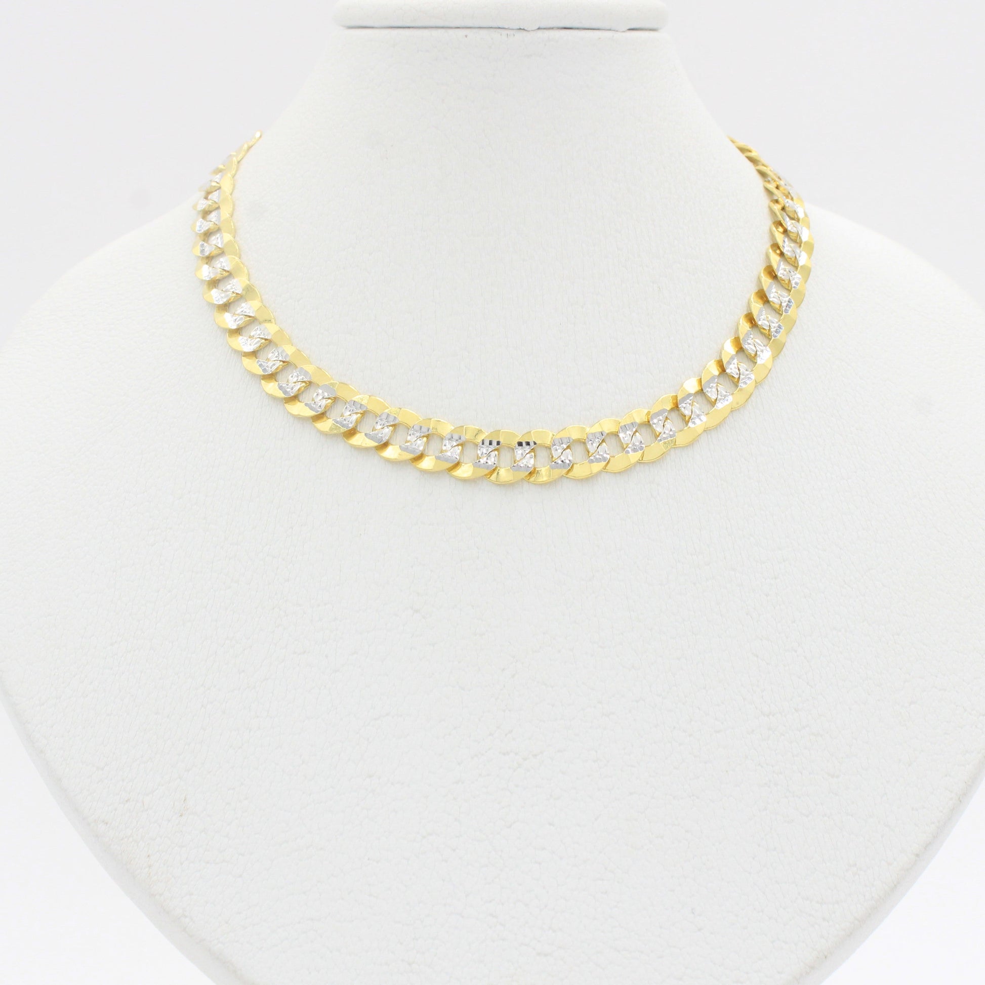Cadena de Oro 14k Tejido Barbado Sólido con Diamantado de Diseño Martillado mod. 10300