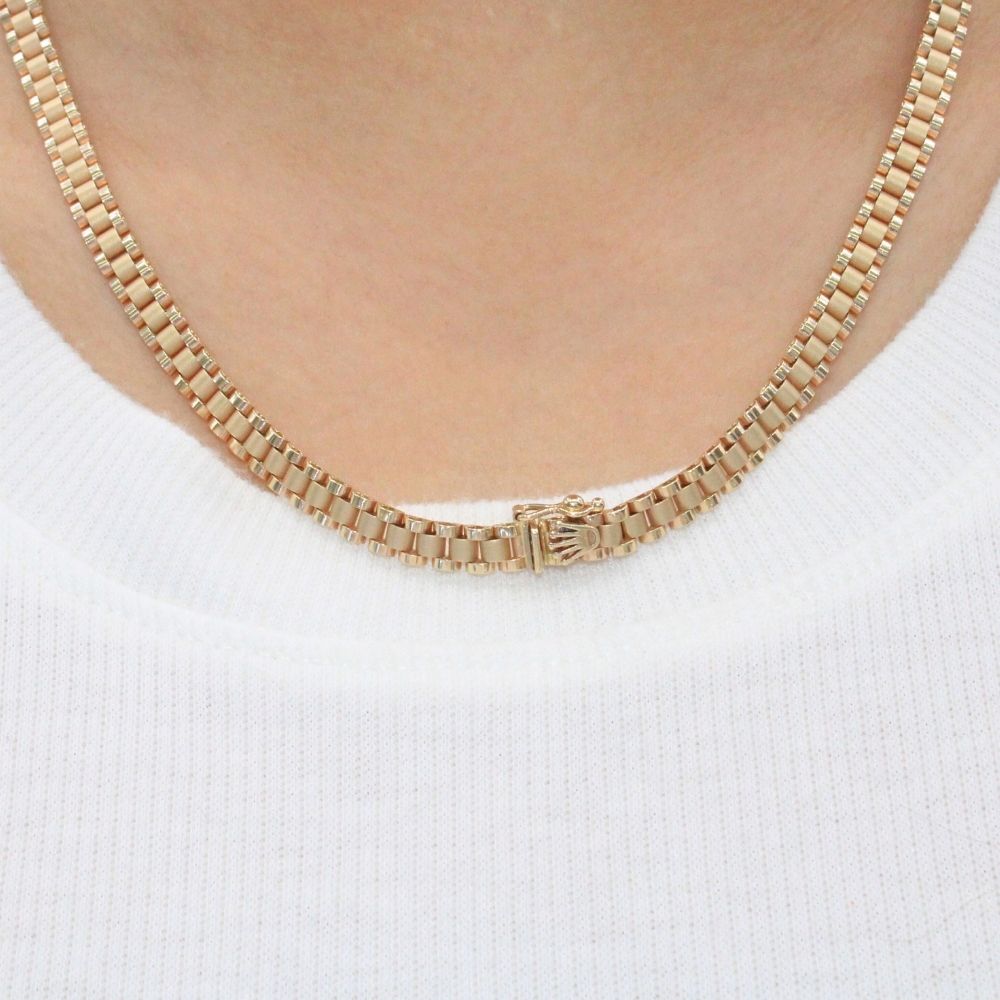 Cadena de Oro 14k Tejido Especial Ensamblado con Eslabones Finos de Tono Mate mod. 9816