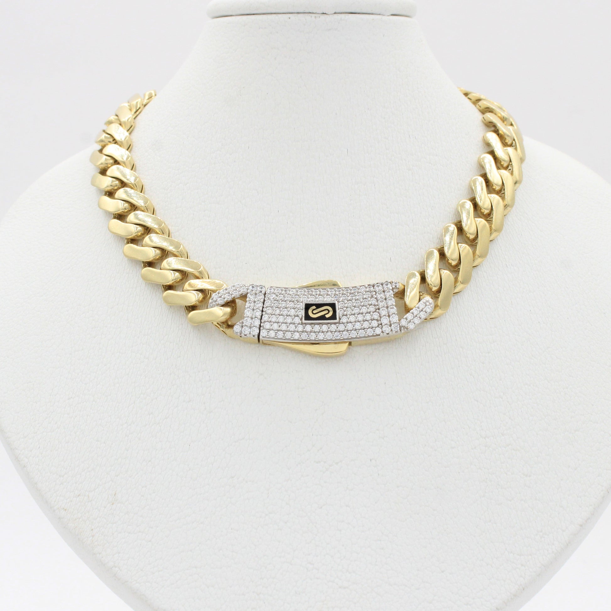 Cadena Monaco Chain de Oro 14k Hueco Modelo Classic Plain con Broche Pavé Swarovski mod. 10369