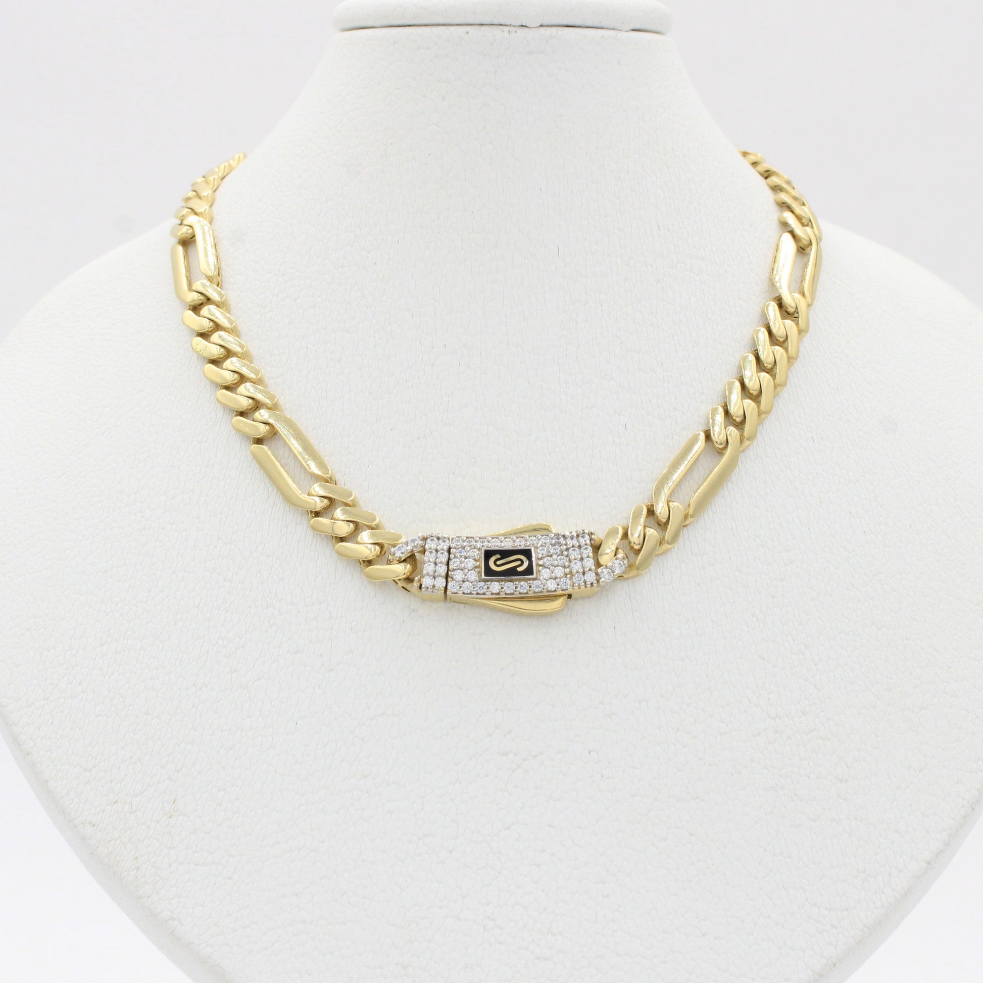 Cadena Monaco Chain de Oro 14k Hueco Modelo Figaro Plain con Broche Pavé Swarovski mod. 10367