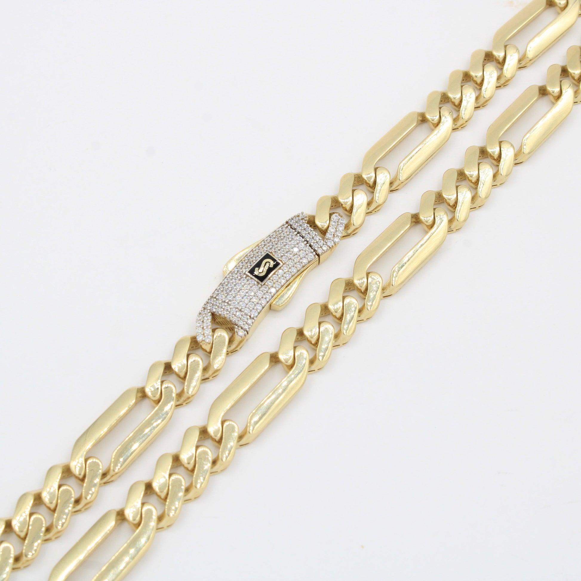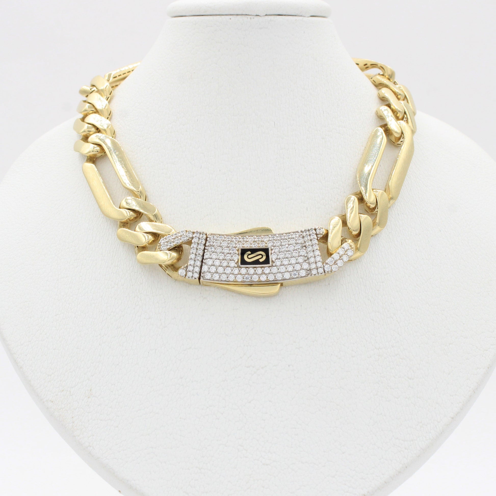 Cadena Monaco Chain de Oro 14k Hueco Modelo Figaro Plain con Broche Pavé Swarovski mod. 10363