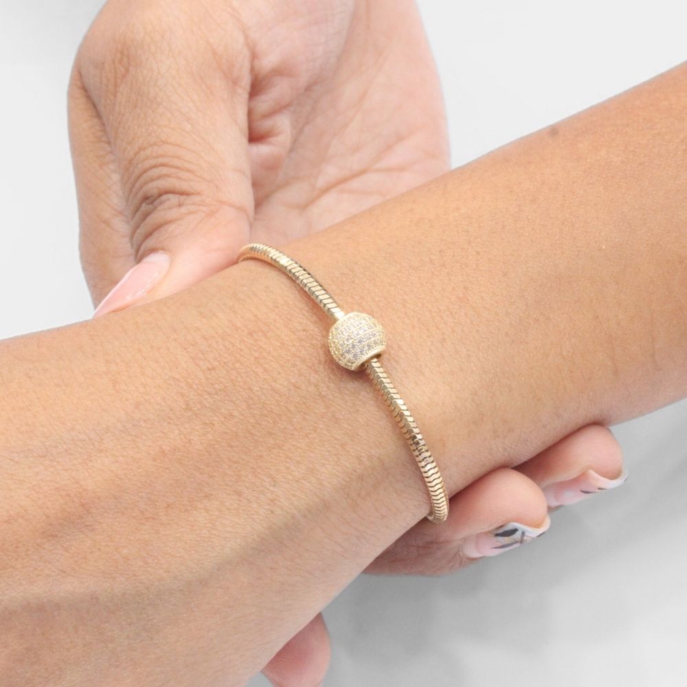 Charm de Oro 14k Bola de Fuego Mediana Hueca con Zirconias mod. 7798