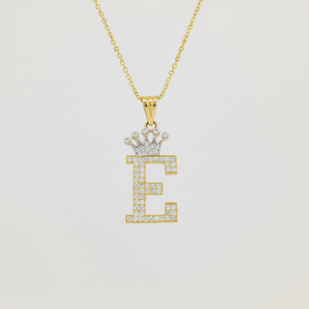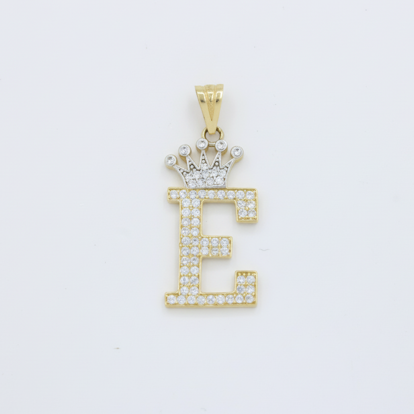 Dije de Oro 14k con Diseño de Inicial E Incrustada con Zirconias mod. 10111