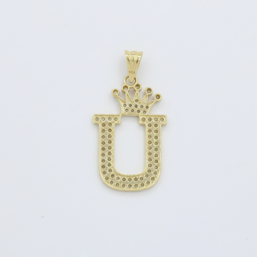 Dije de Oro 14k con Diseño de Inicial U Incrustada con Zirconias mod. 10097