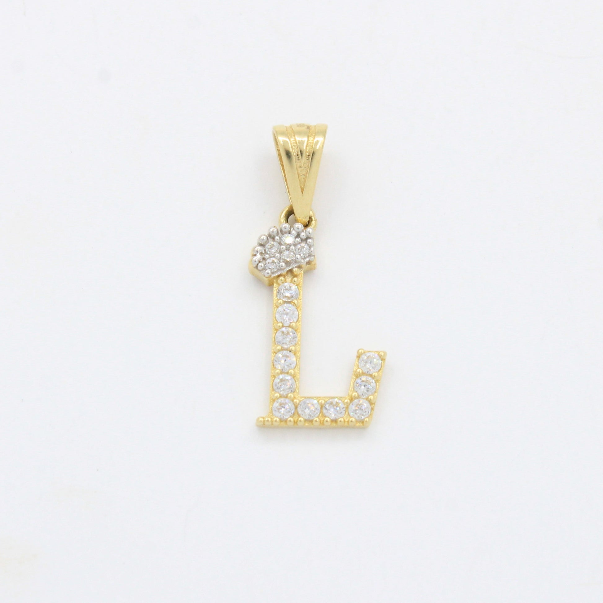 Dije de Oro 14k Modelo de Inicial L Diseñado con Corona e Incrustación de Zirconias mod. 10568