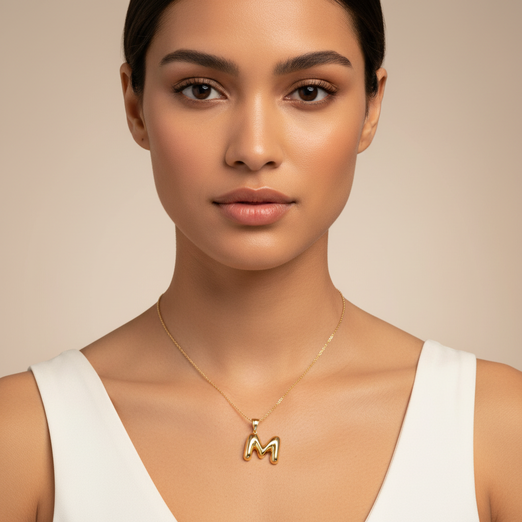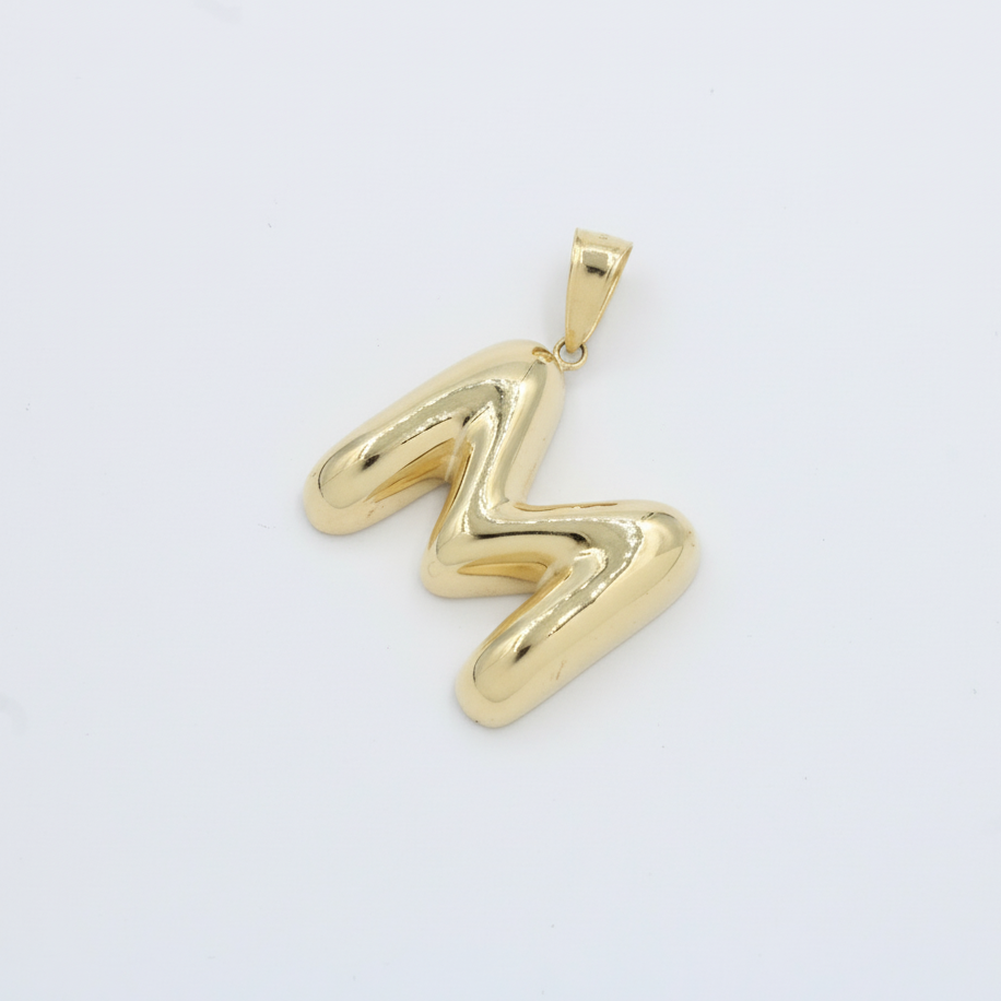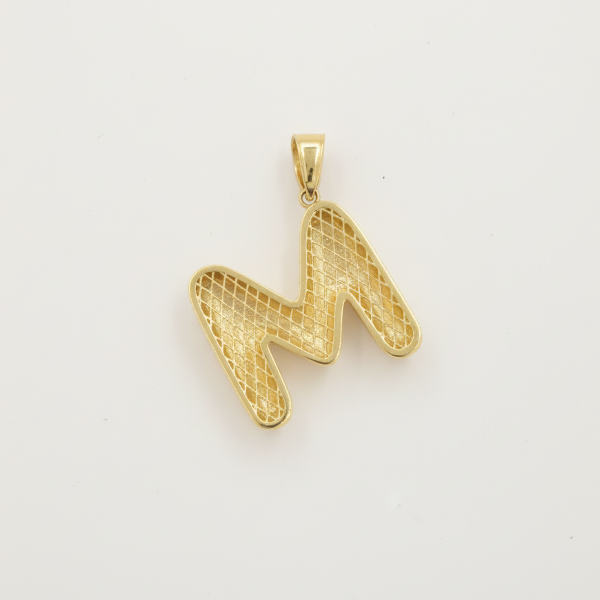 Dije de Oro 14k Modelo de Inicial M de Diseño Inflado y Brillante mod. 10090