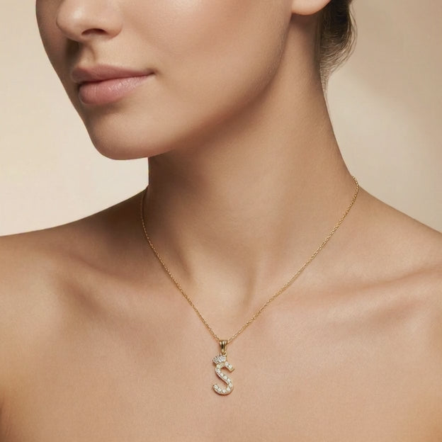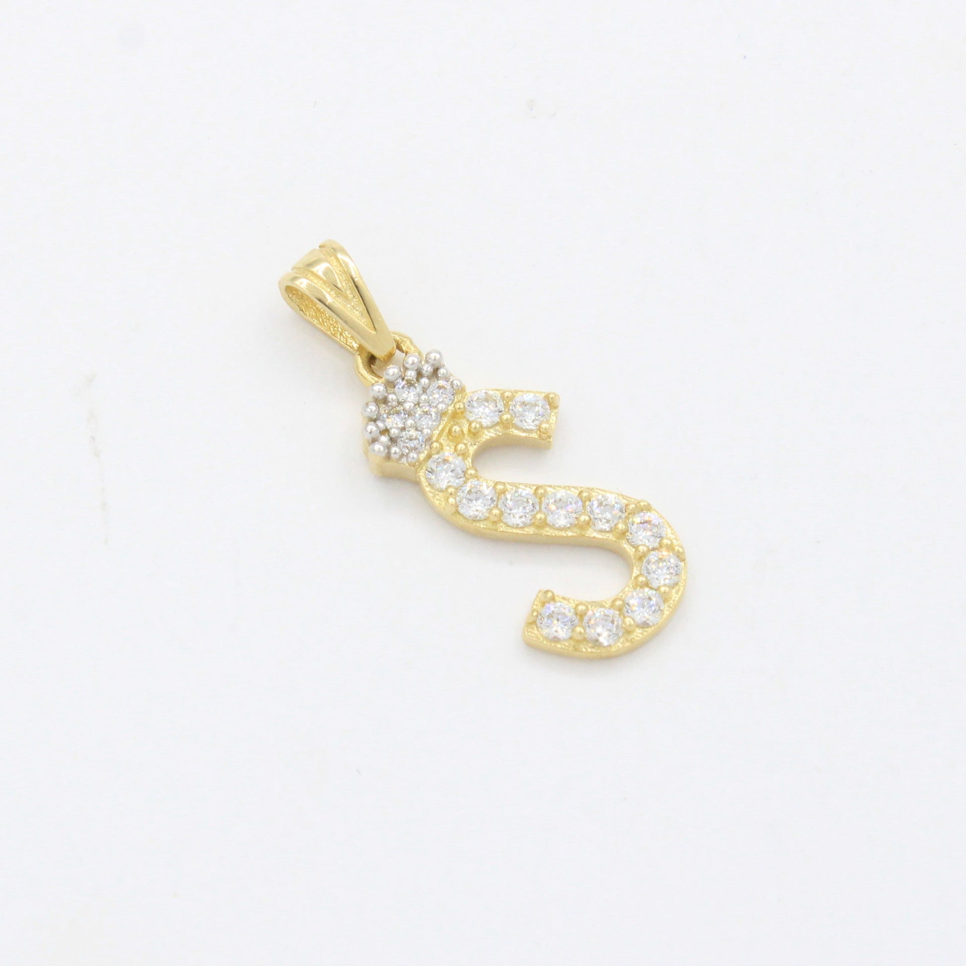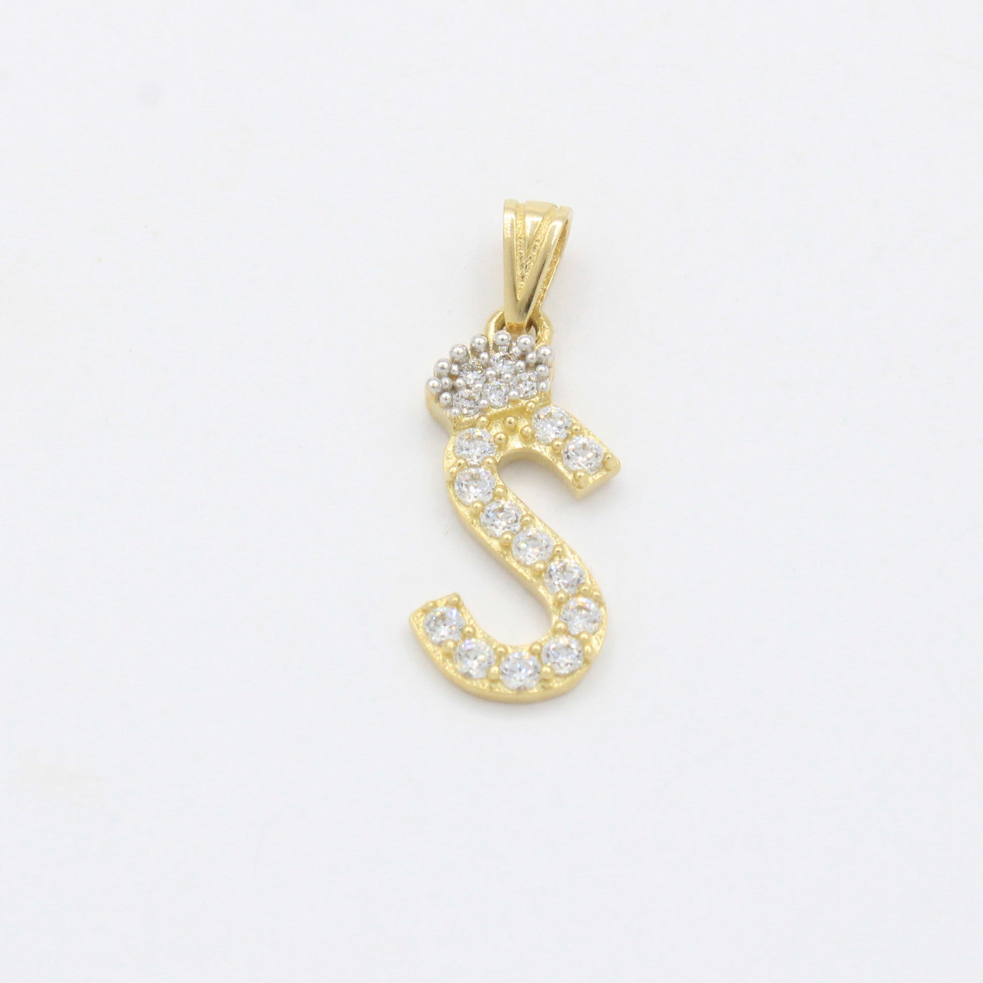Dije de Oro 14k Modelo de Inicial S Diseñado con Corona e Incrustación de Zirconias mod. 10573