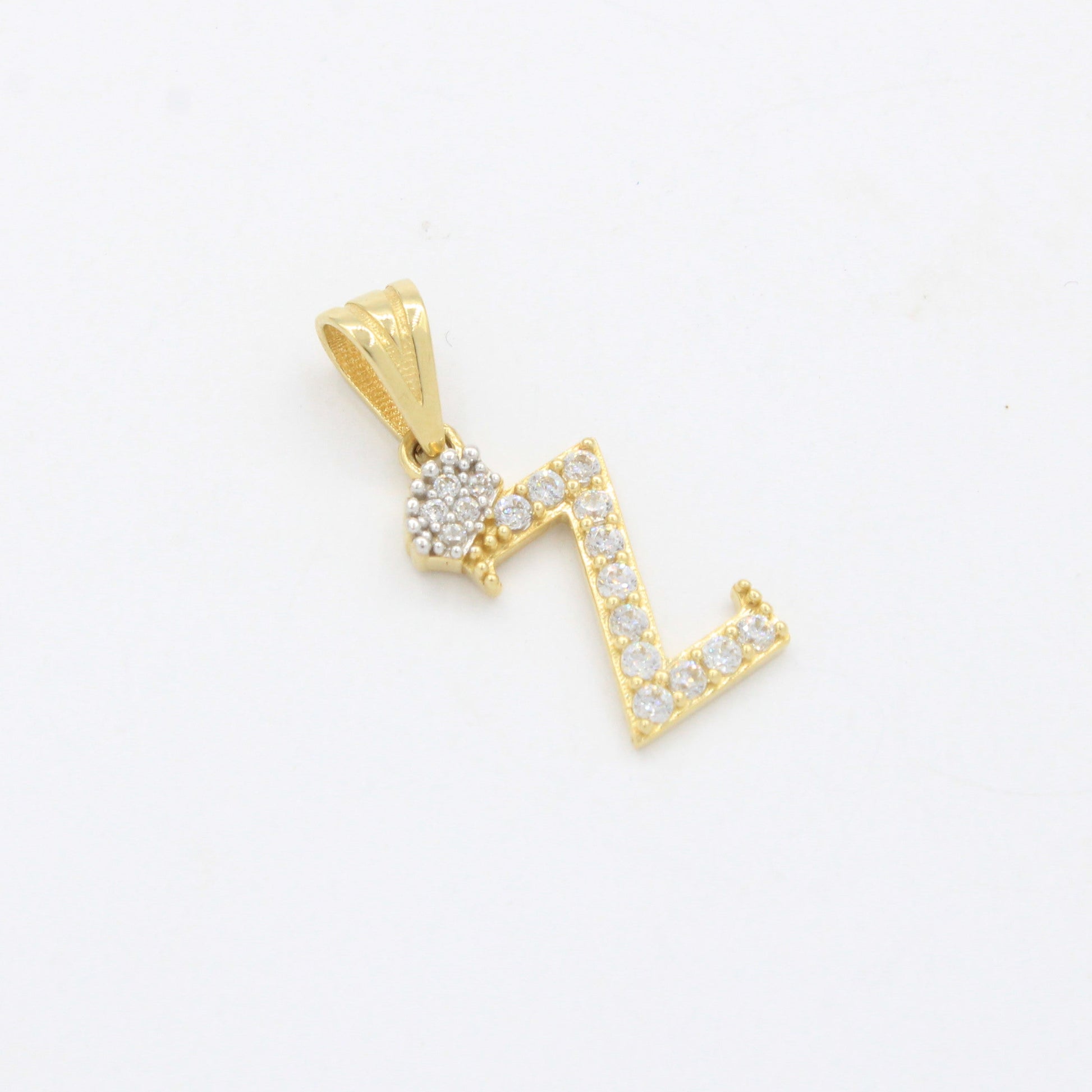 Dije de Oro 14k Modelo de Inicial Z Diseñado con Corona e Incrustación de Zirconias mod. 10579
