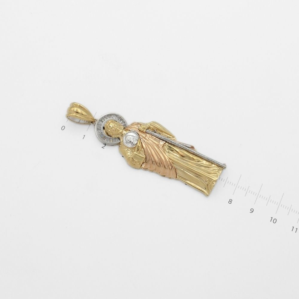Dije de Oro 14k San Judas Tadeo Florentino con Aureola de Zirconias Mod. 9887