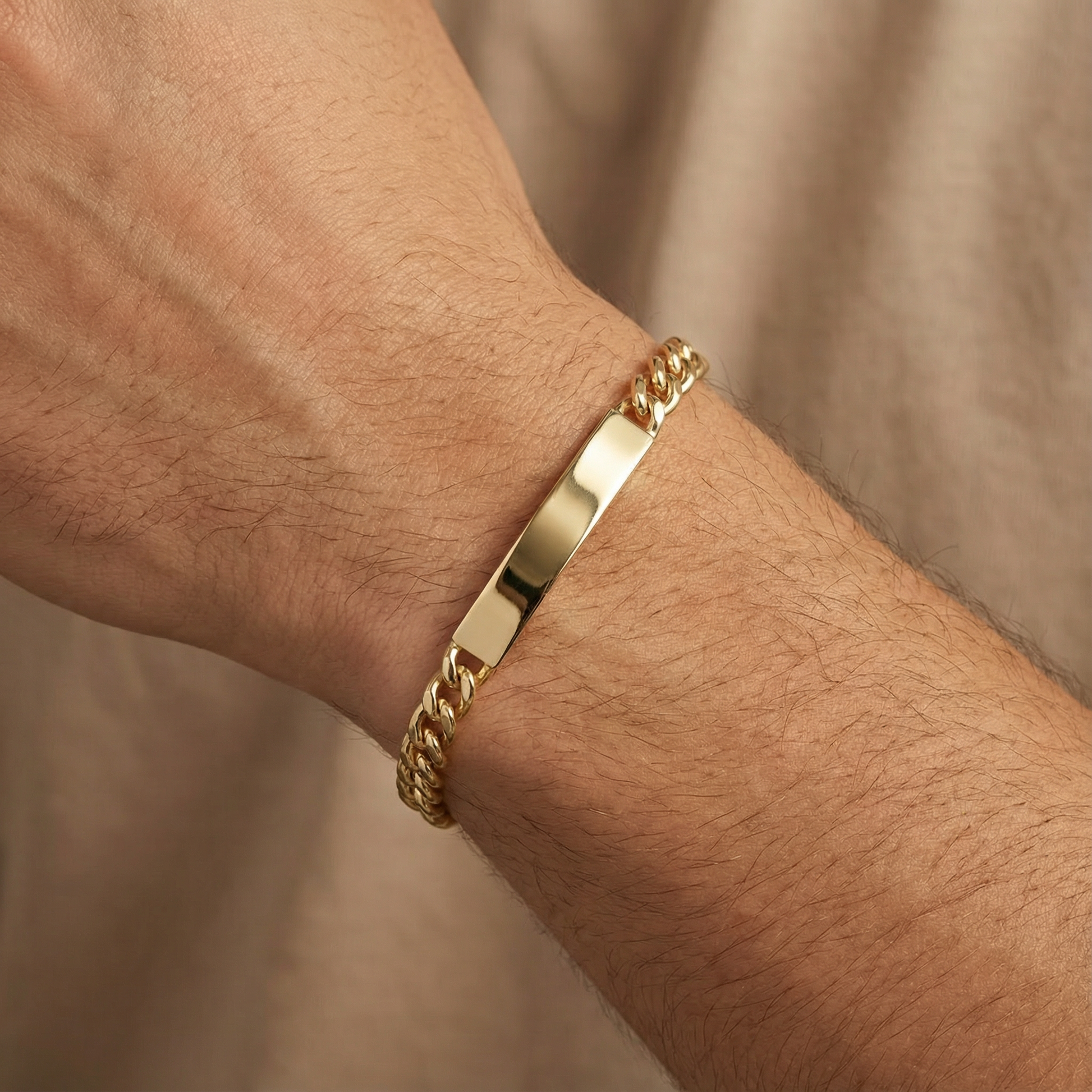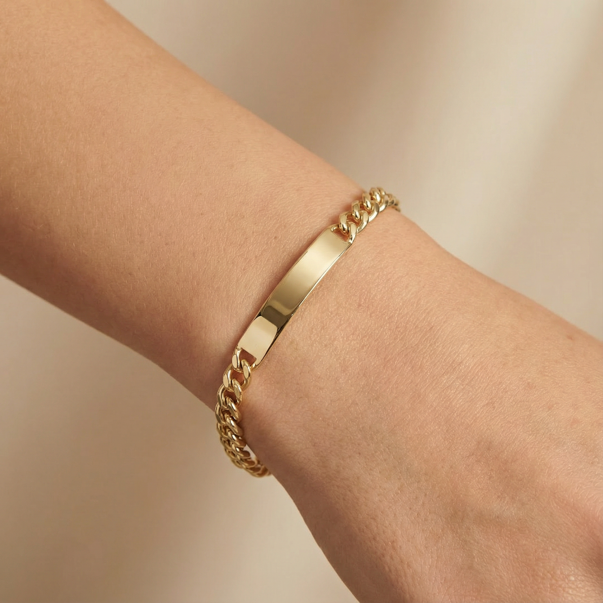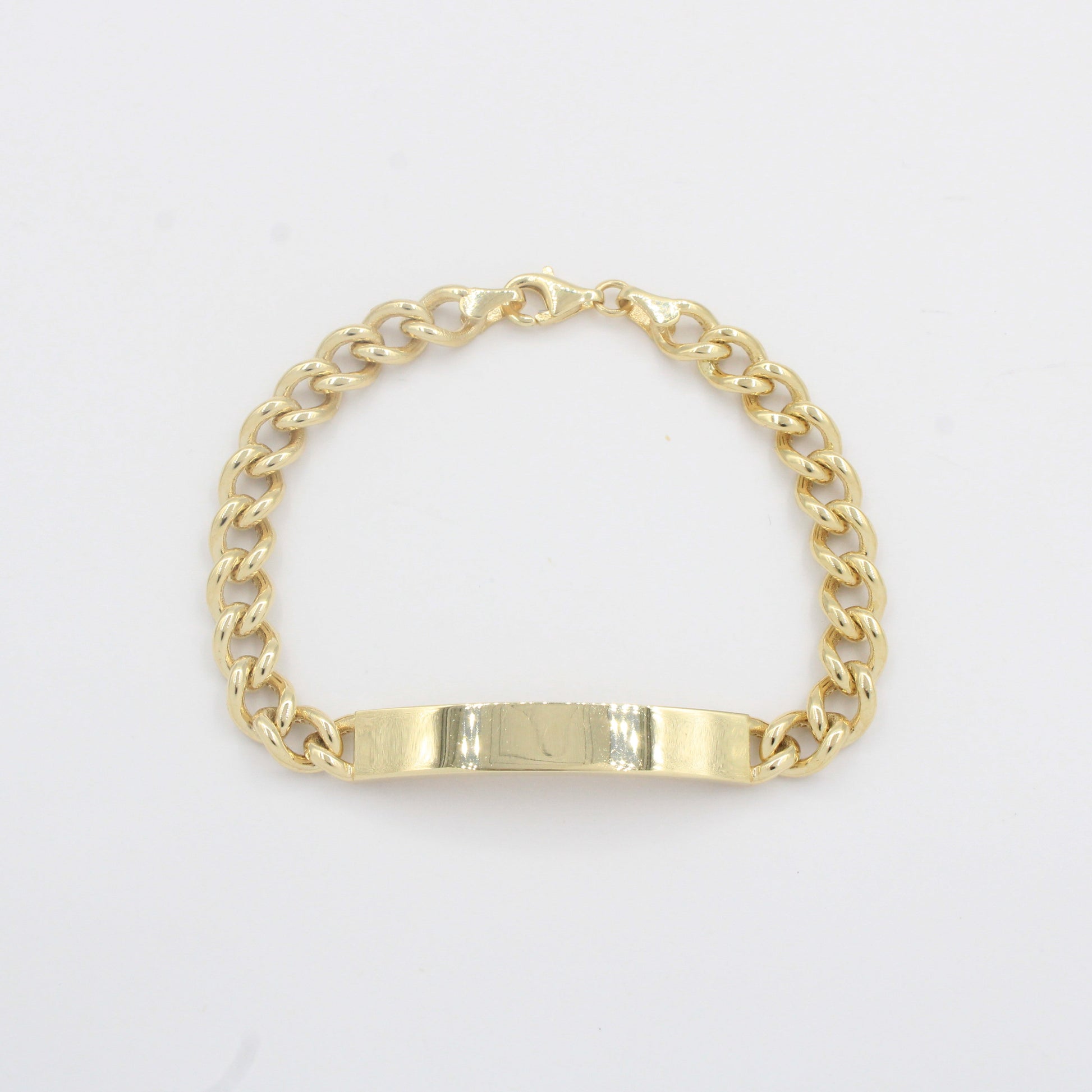 Esclava de Oro 14k Hueca de Tejido Barbado Brillante y Placa Brillante mod. 10301