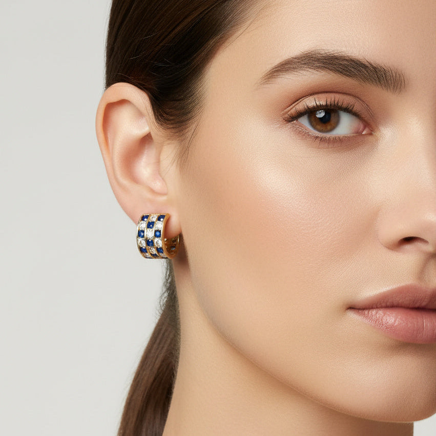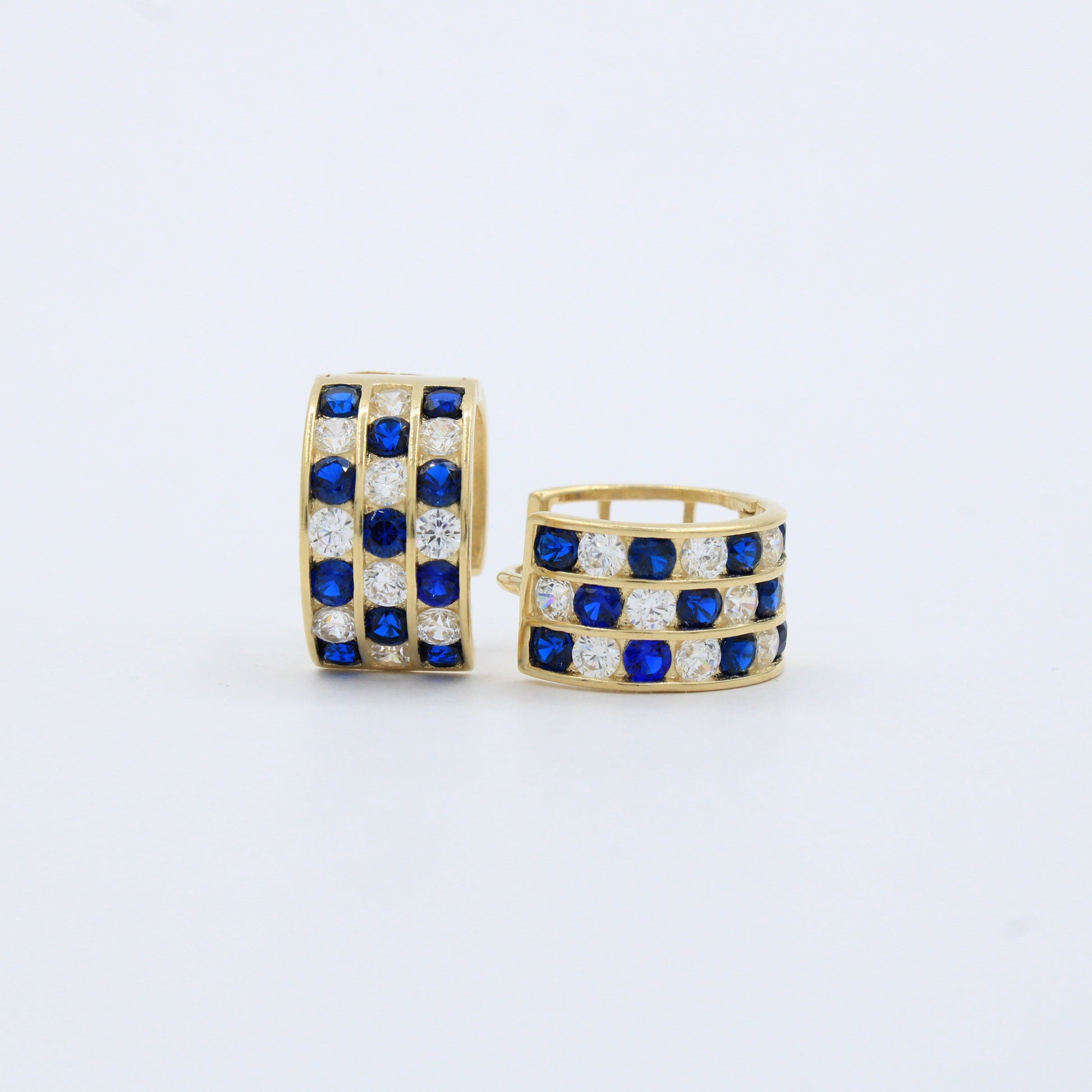 Grapa de Oro 14k Diseño 1x1 con Zirconias Azules y Brillantes mod. 10173