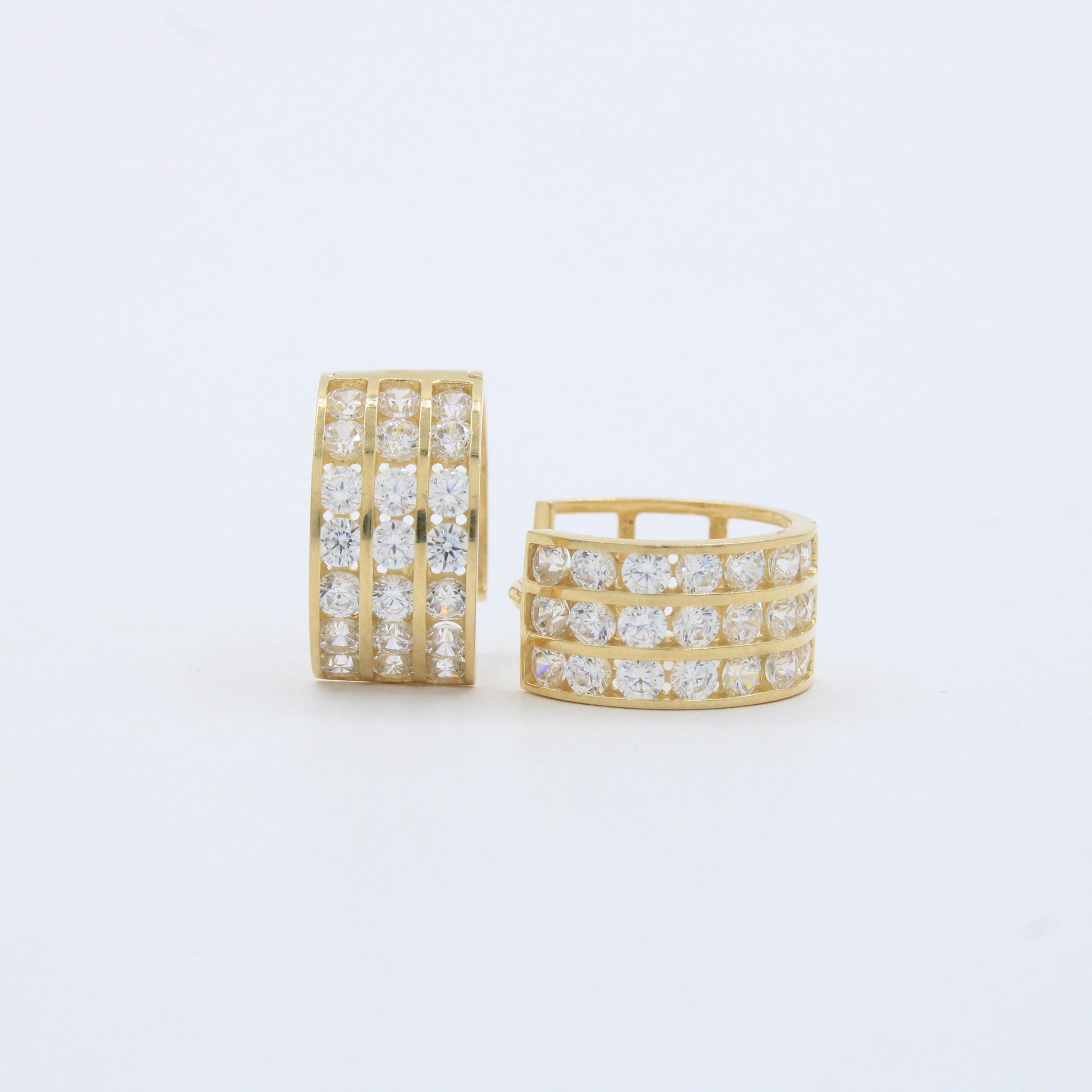 Grapa de Oro 14k Diseño de 3 Líneas con Zirconias Brillantes mod. 10174