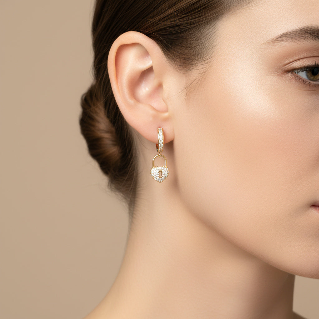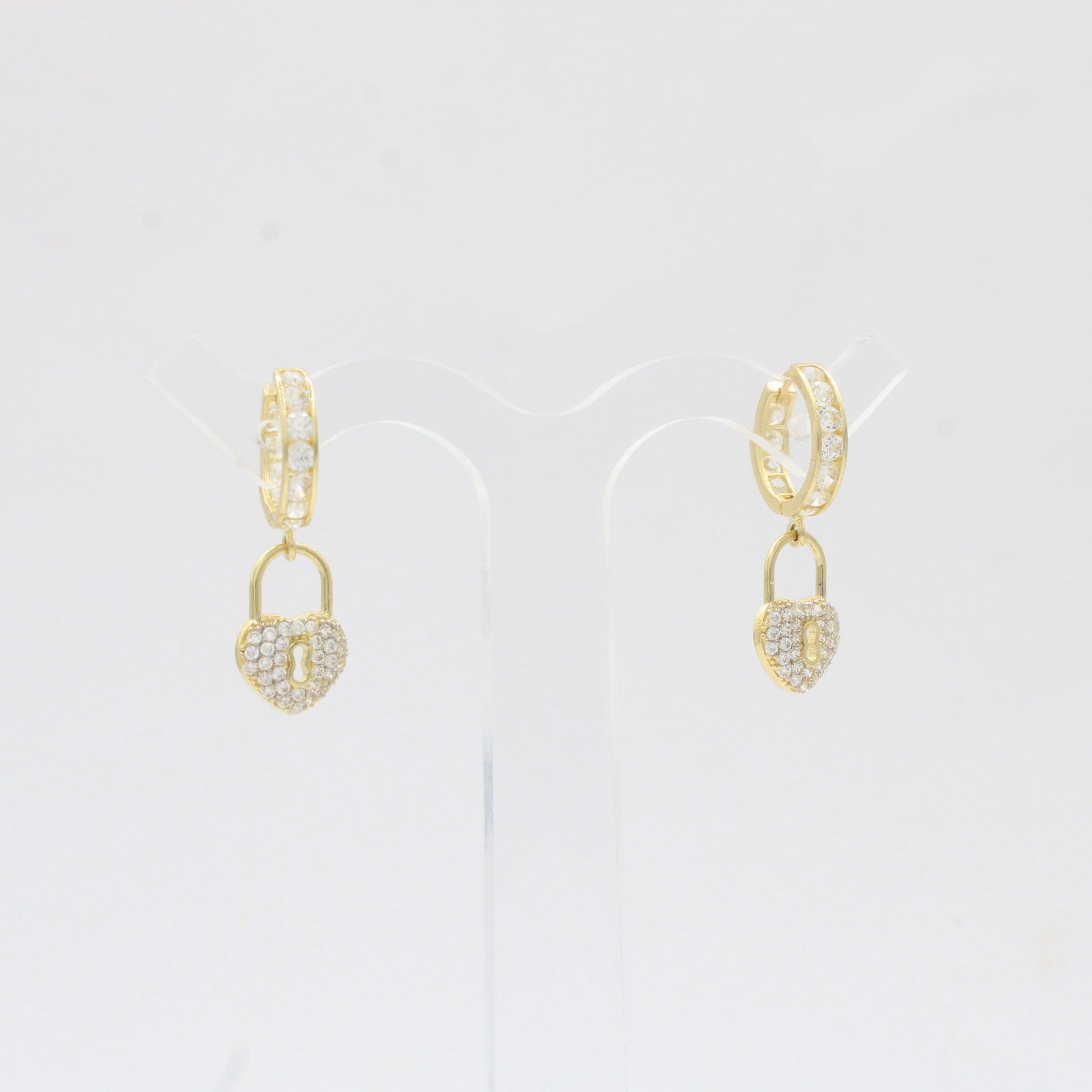 Grapa Larga de Oro 14k Candado de Corazón con Zirconias mod. 10375