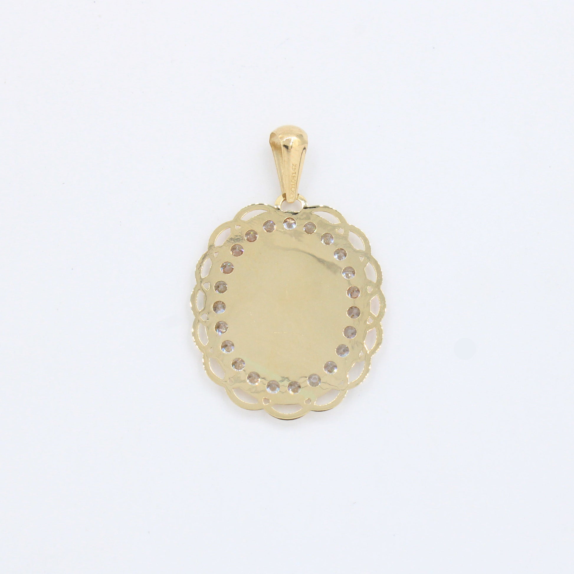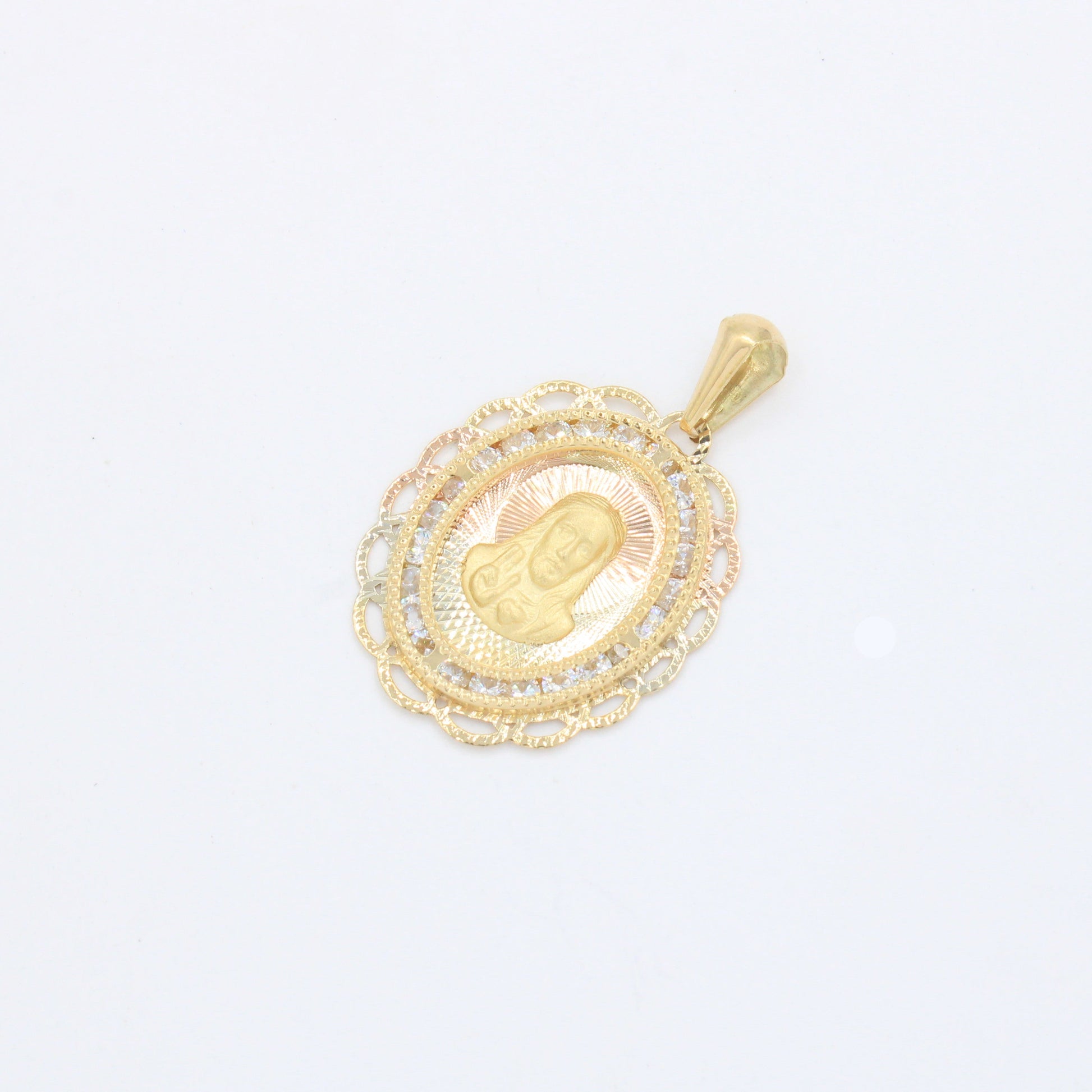 Medalla de oro 14k Sagrado Corazón de Jesús Diseño Oval Diamantado con Incrustado de Zirconias mod. 10184