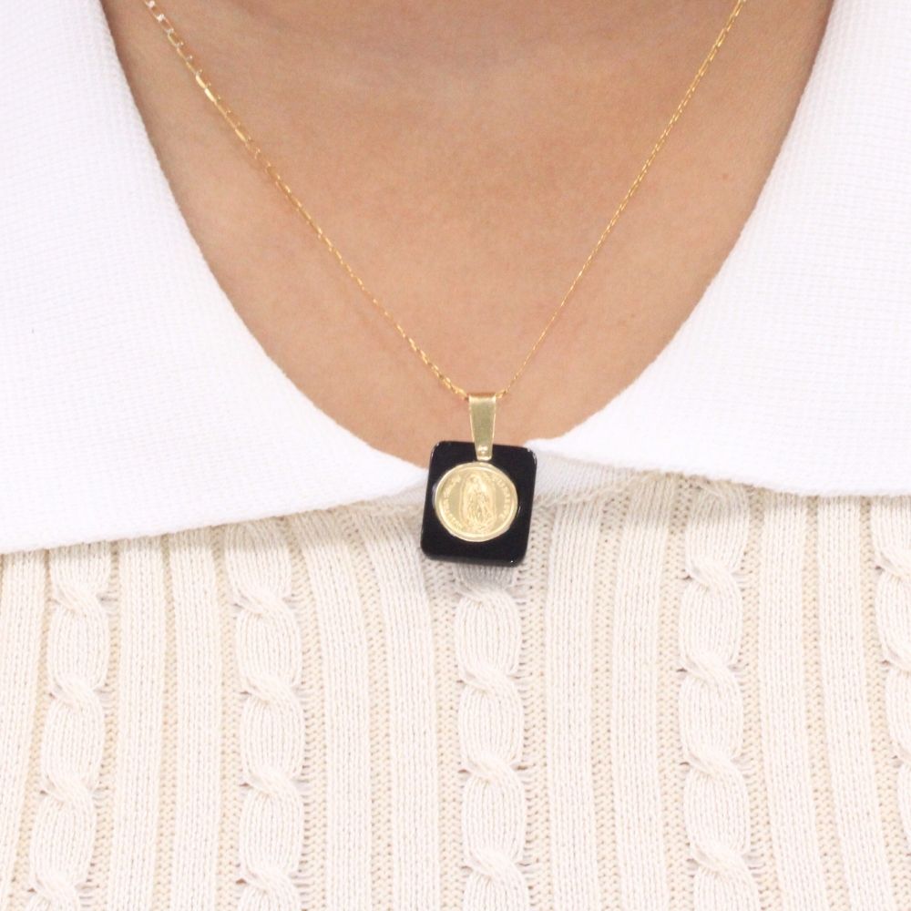 Medalla de Oro 14k Virgen Guadalupe Incrustada en Cuadro de Onix mod. 8025