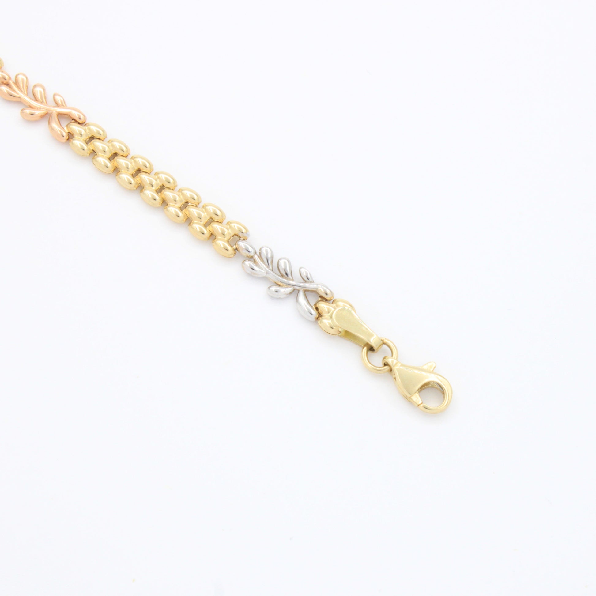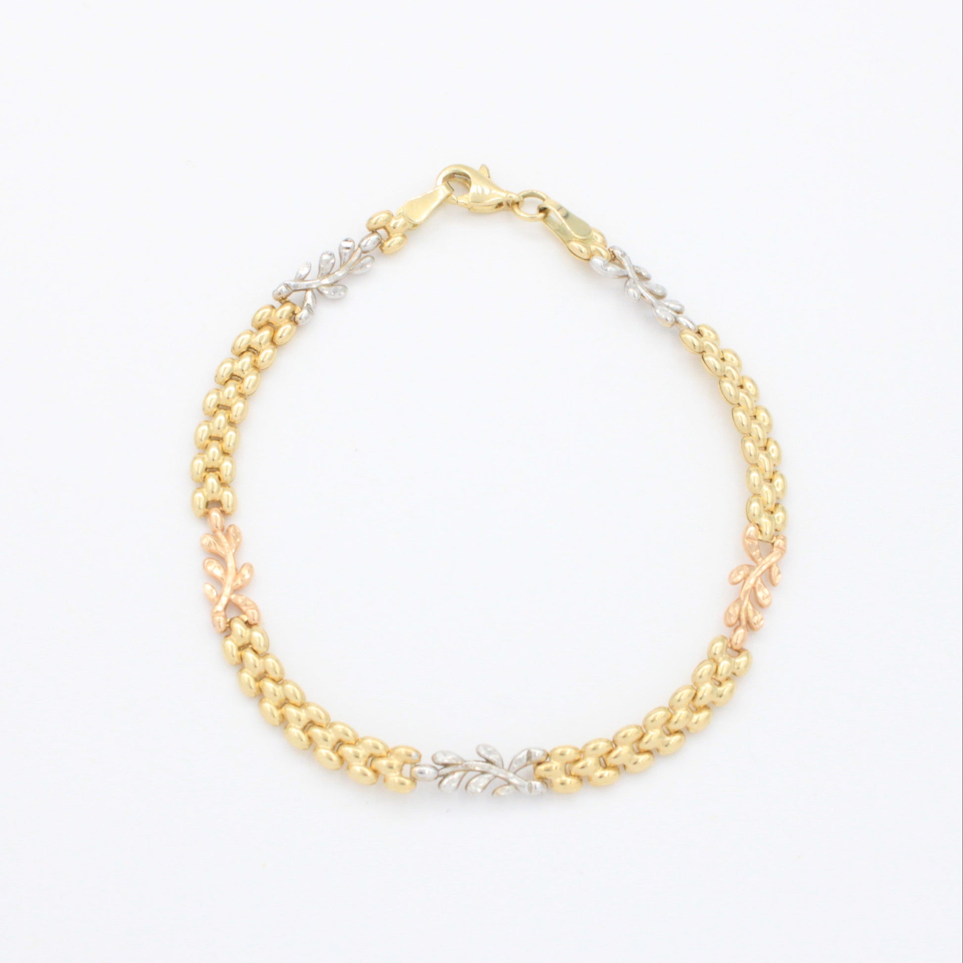 Pulsera de Oro 14k de Tejido Fino y Hueco con Eslabones de Laurel Brillante mod. 10738