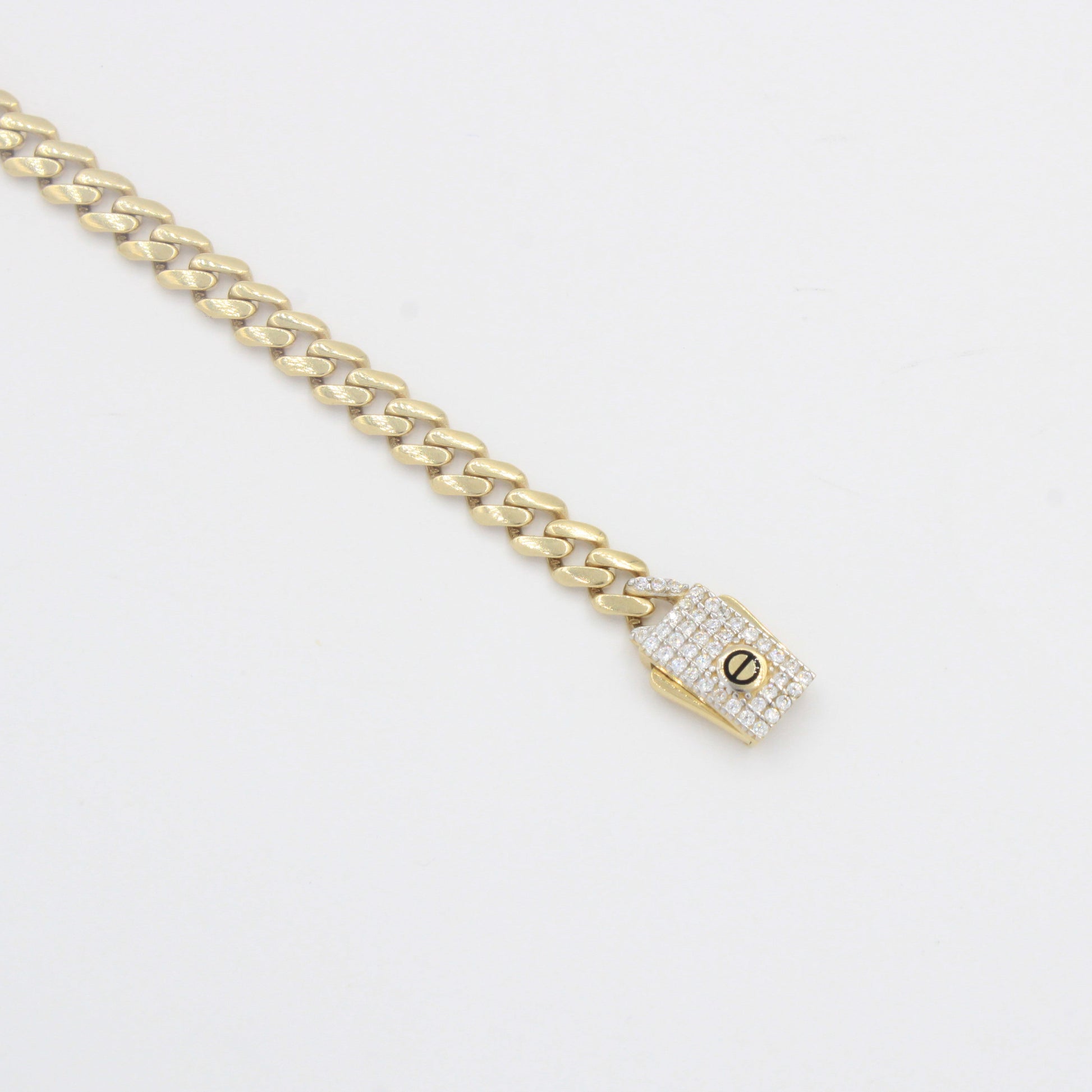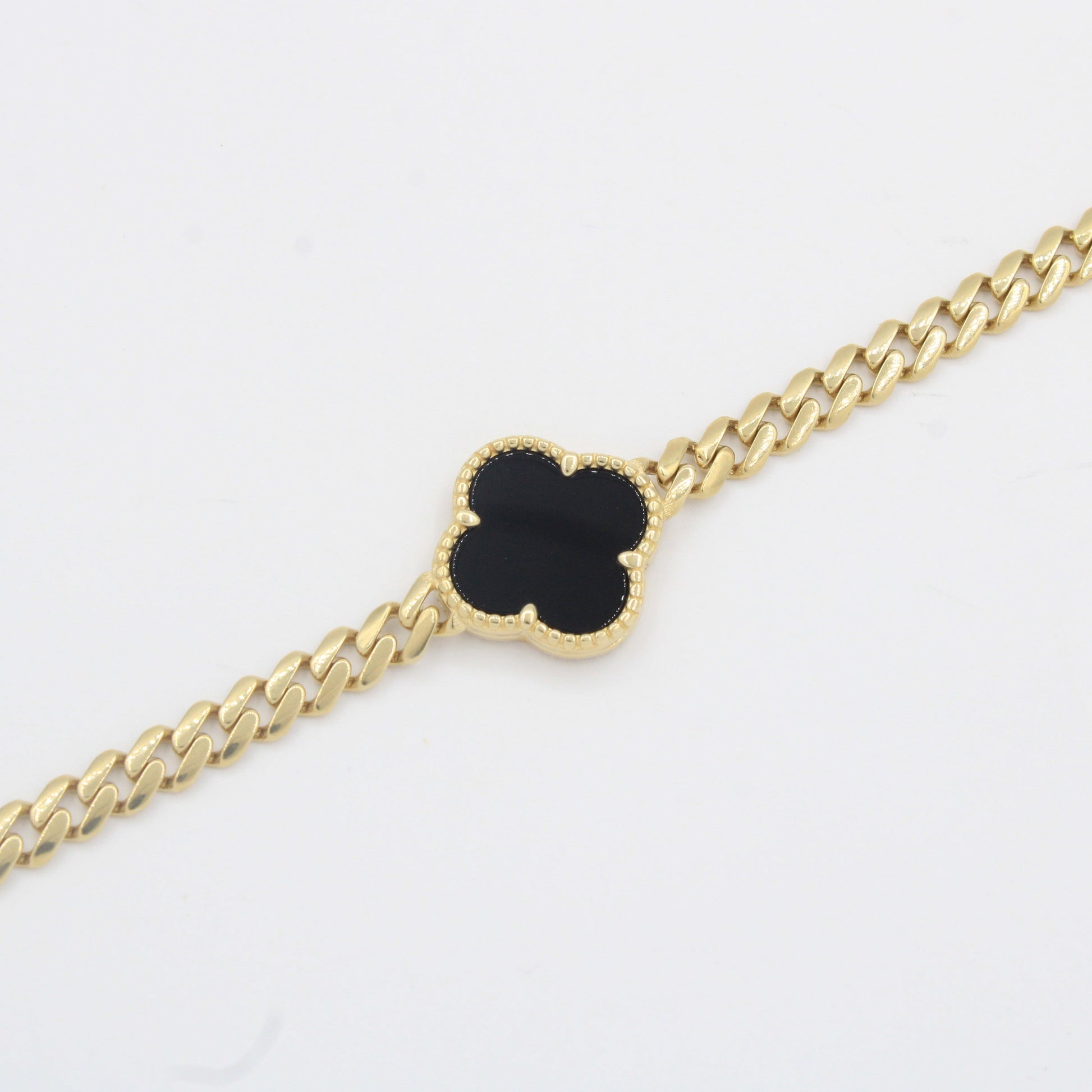 Pulsera de Oro 14k Tejido Barbado Hueco con Trébol de Onix y Zirconias Finas mod. 10304