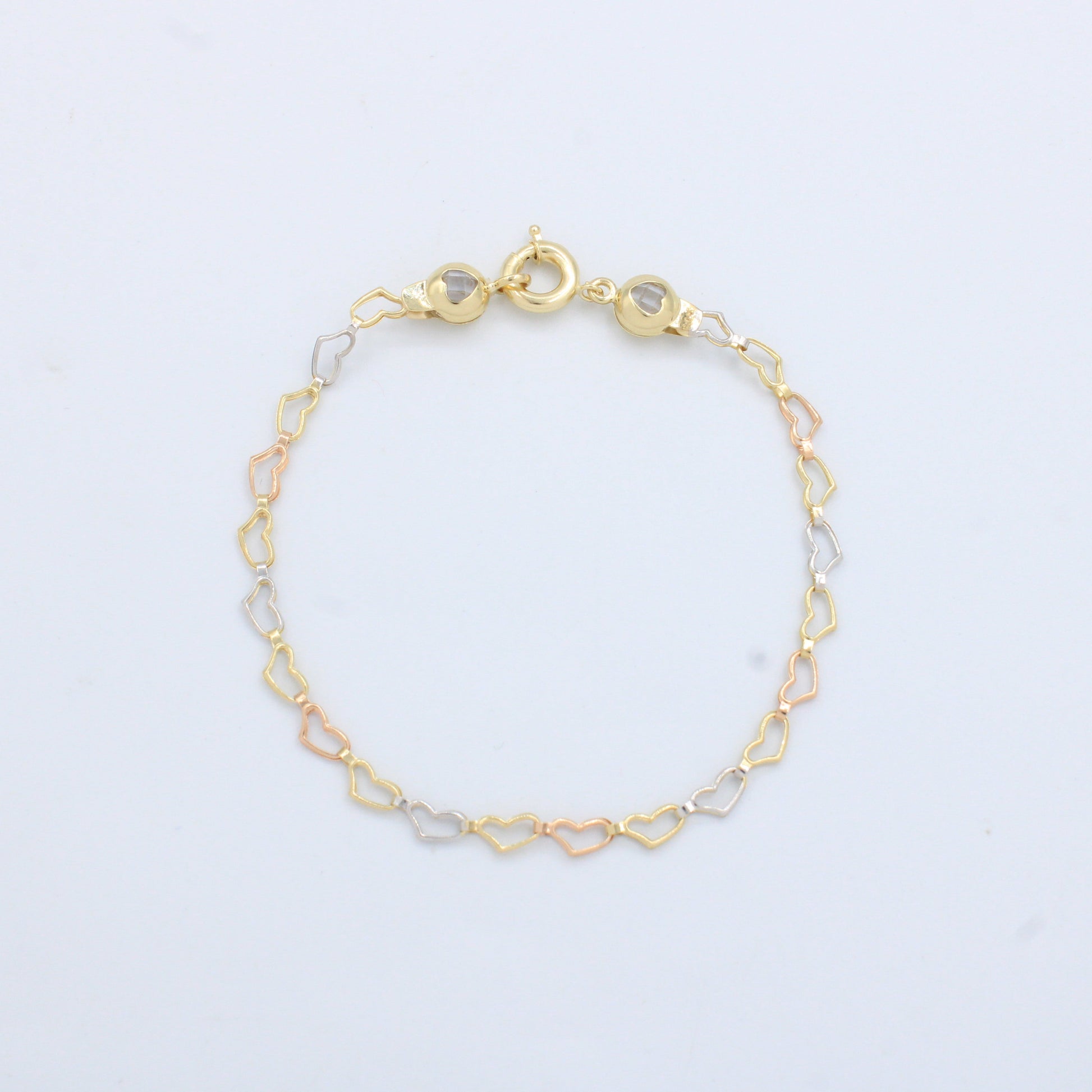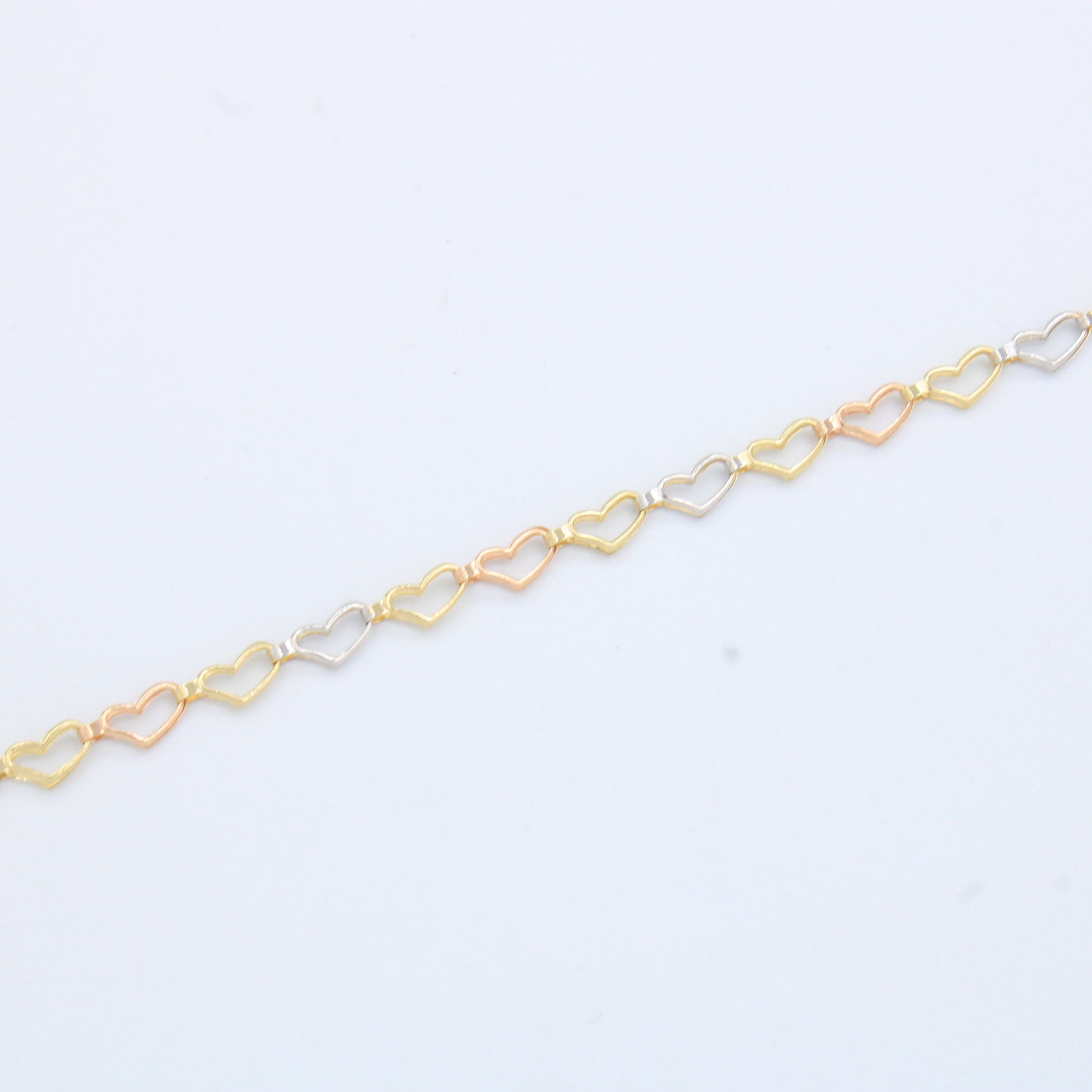 Pulsera de Oro 14k Tejido de Corazones Especial y Brillante mod. 10188