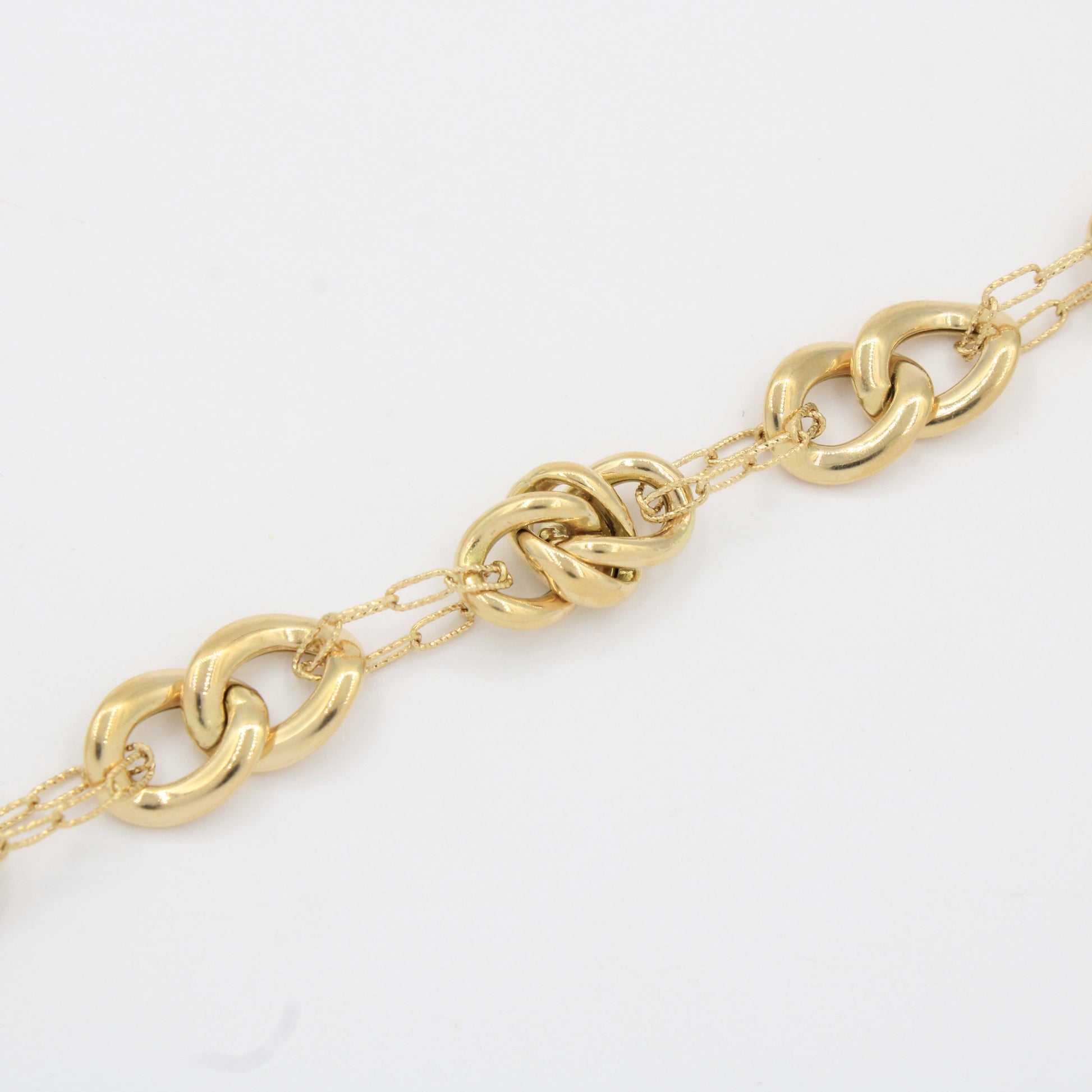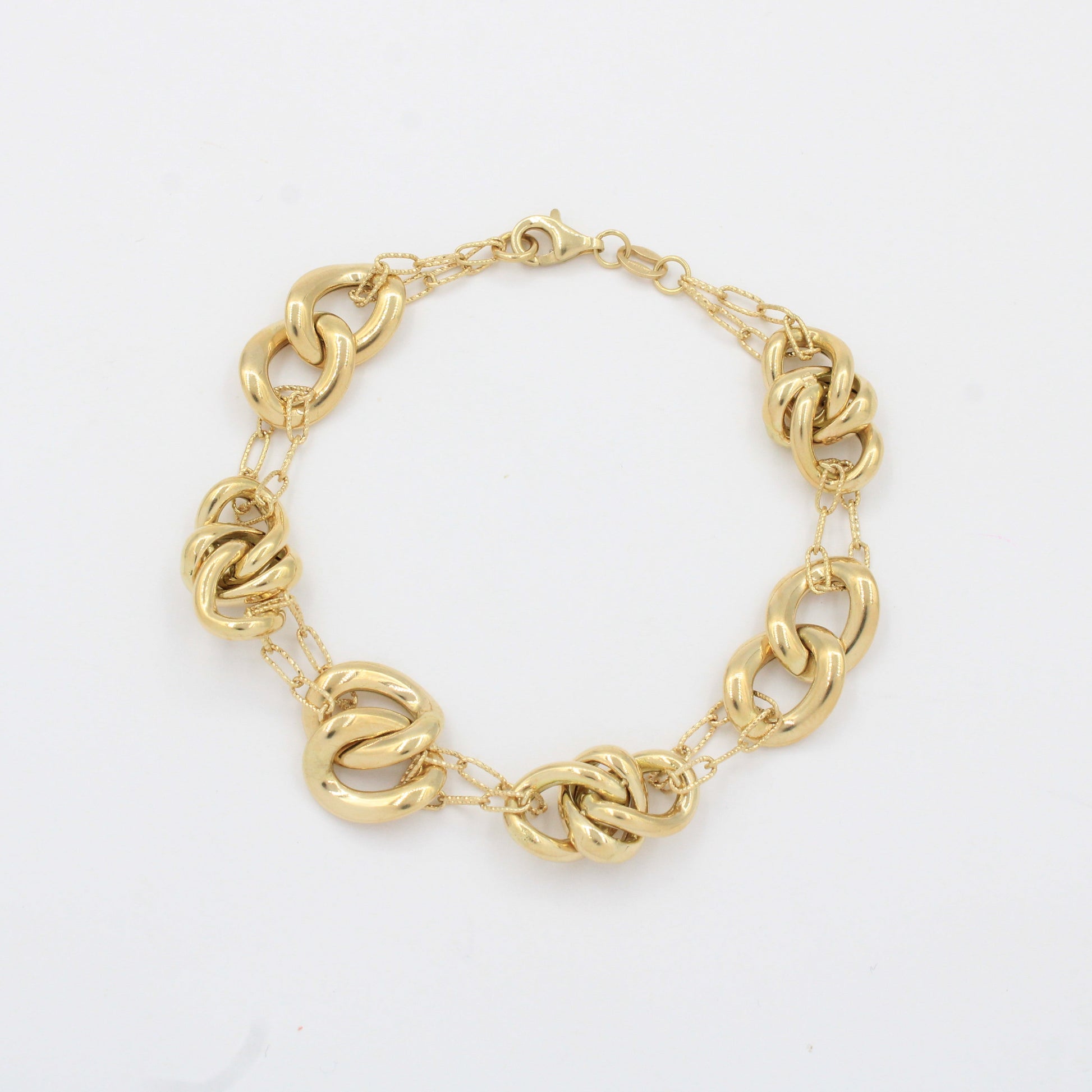 Pulsera de Oro 14k Tejido Especial de Eslabones Huecos y Brillantes Enlazados con Cadena Fina y Brillante mod. 10334