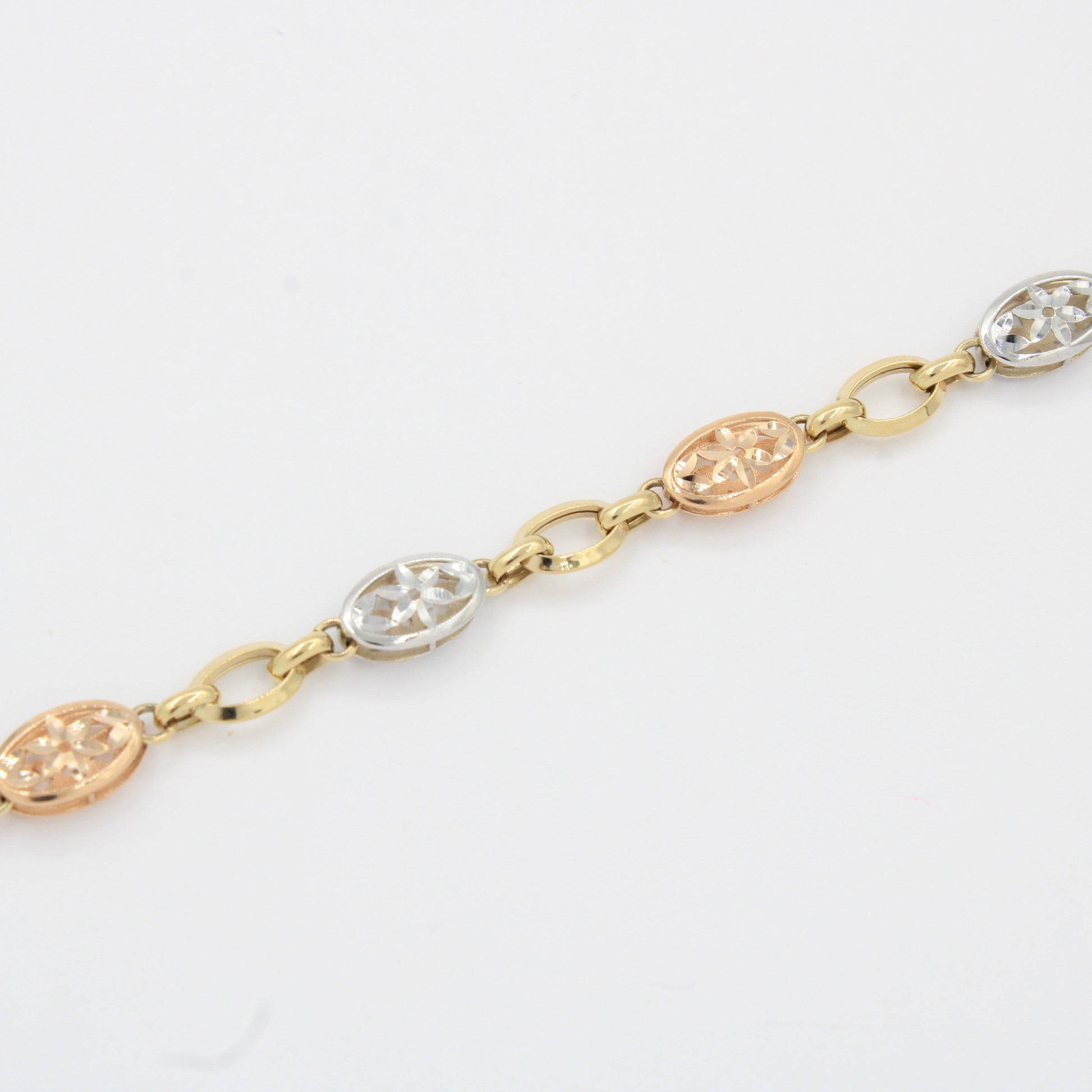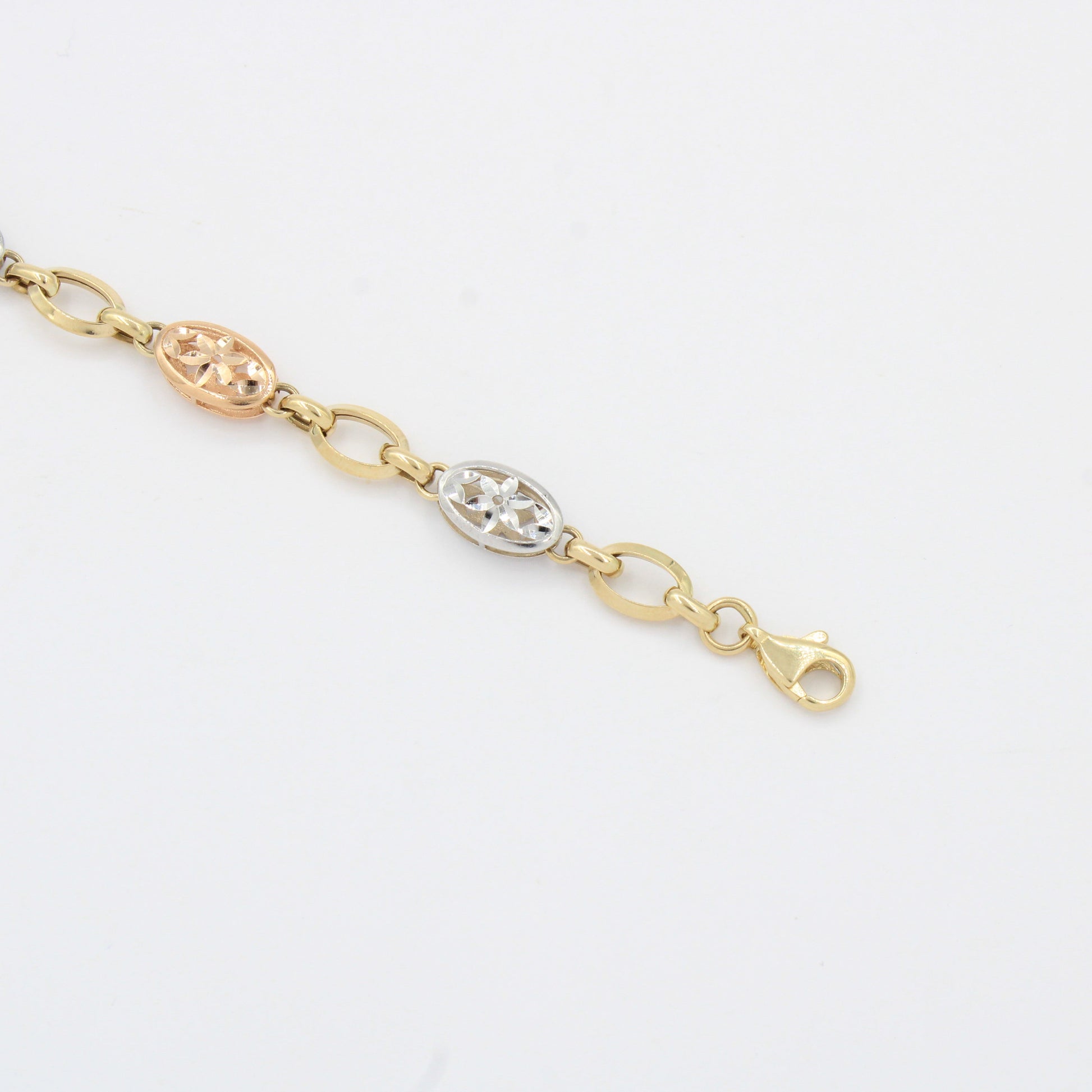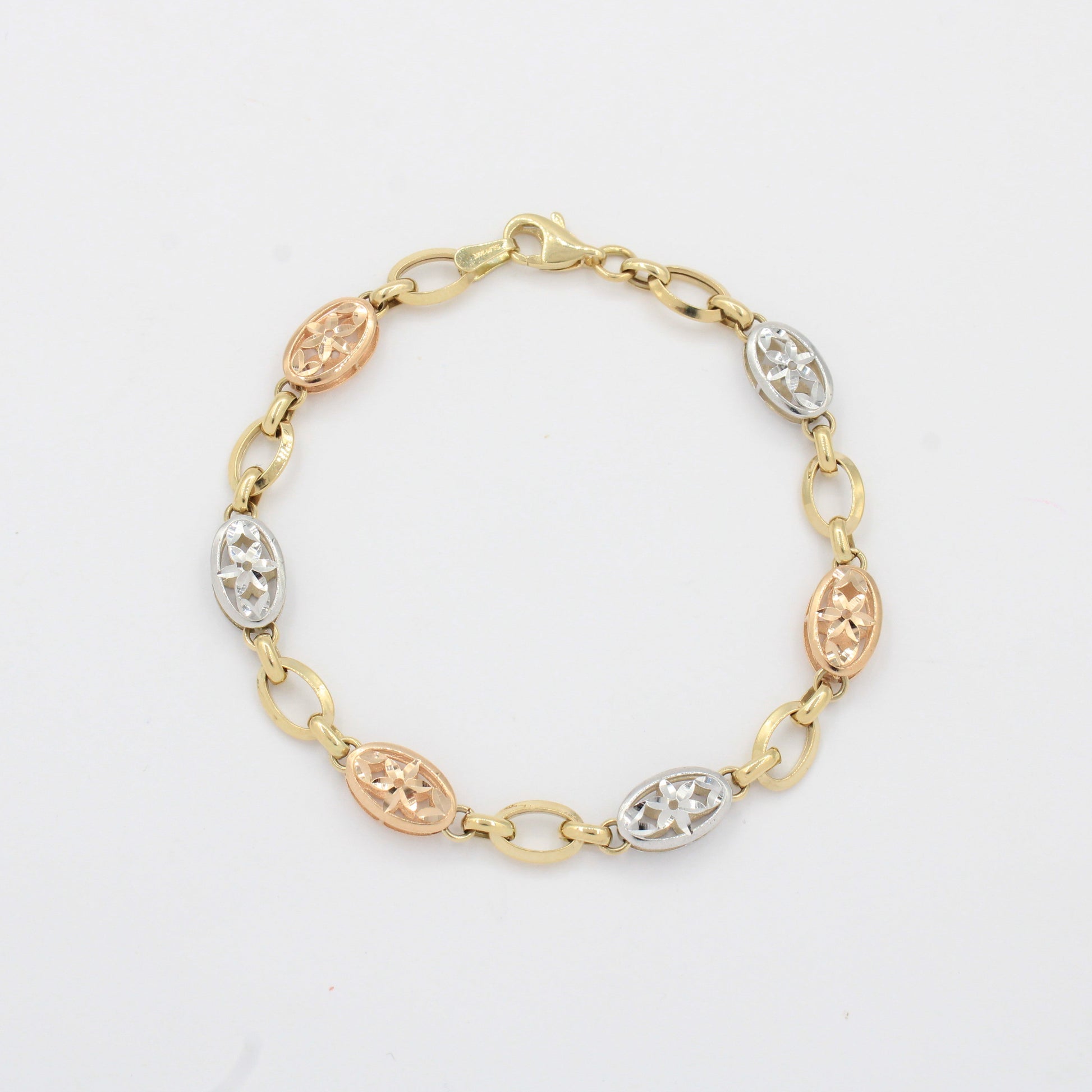 Pulsera de Oro 14k Tejido Fino de Eslabones Diamantados Ensamblados mod. 10337