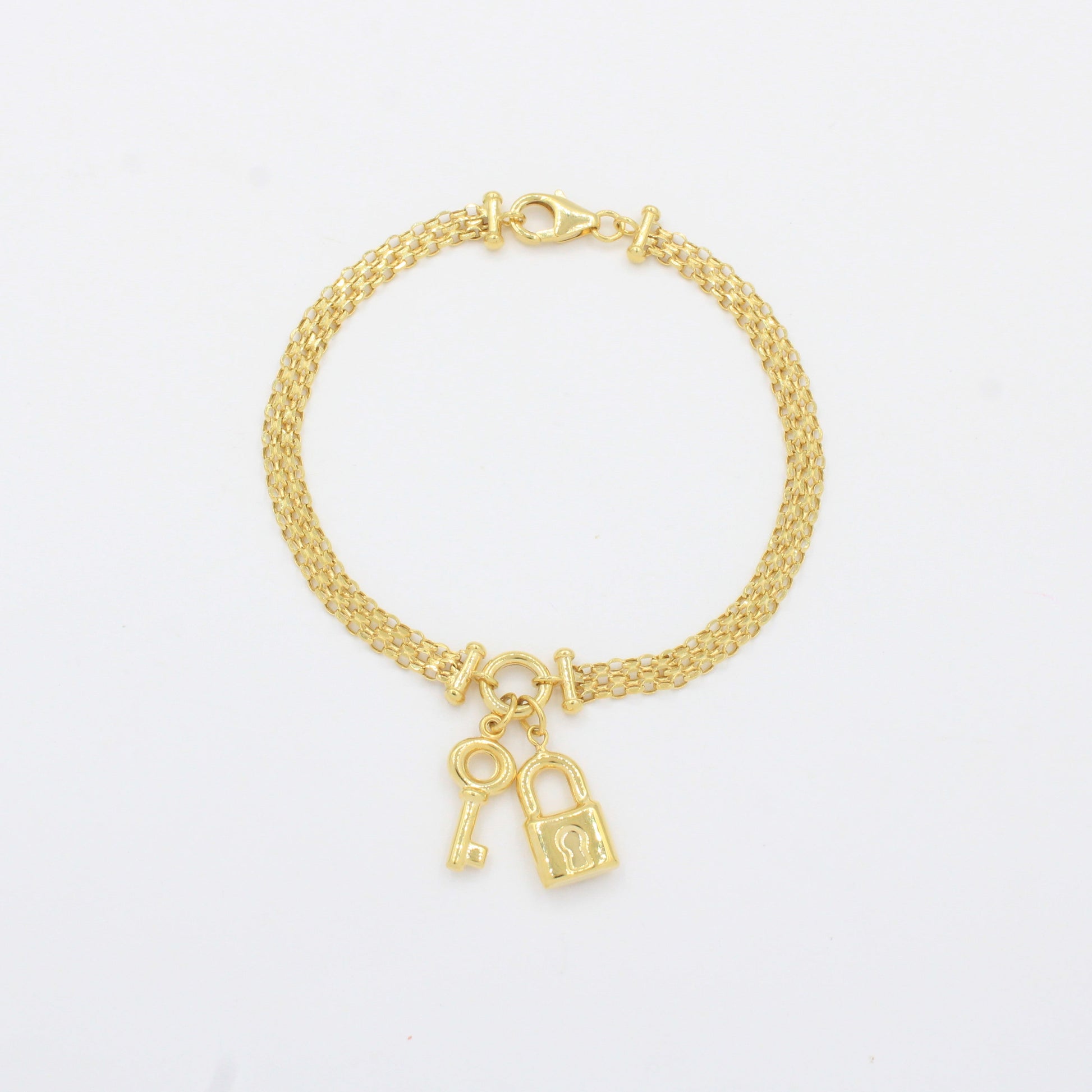 Pulsera de Oro 14k Tejido Fino y Ligero con Dijes de Llave y Candado mod. 10336