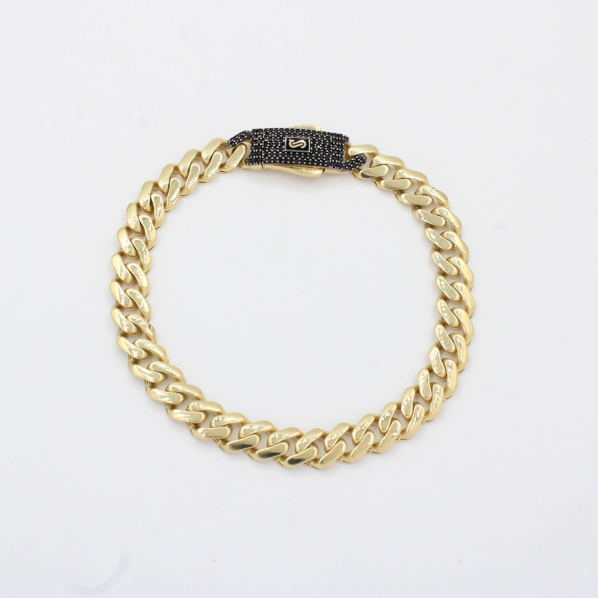 Pulsera Monaco Chain de Oro 14k Hueco Modelo Classic con Broche Pavé Swarovski Oscuro mod. 10328
