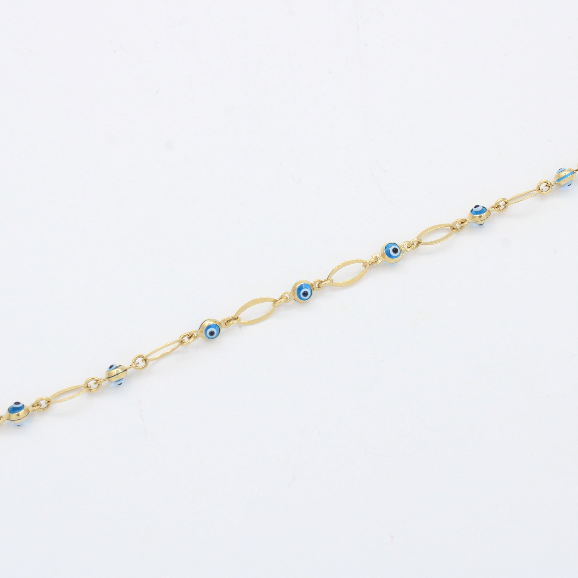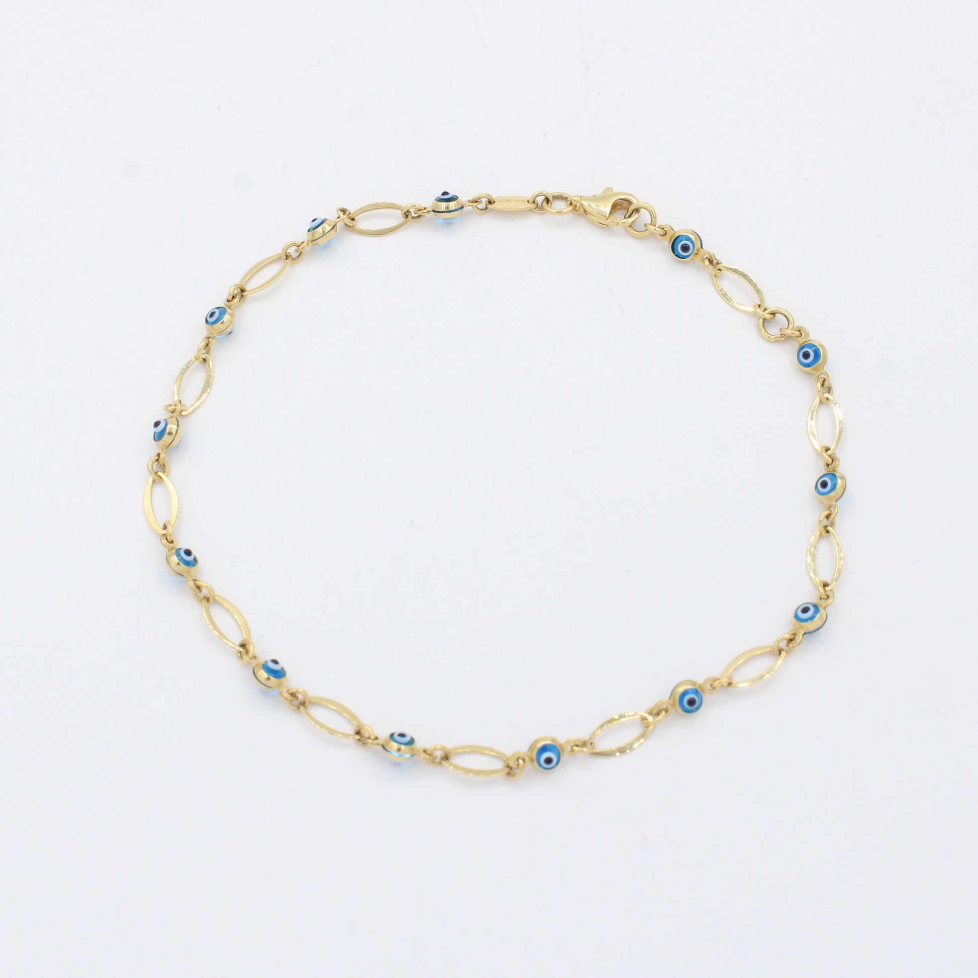 Tobillera de Oro 14k Tejido Eslabon Ovalado con Diseño de Ojo Turco mod. 10541